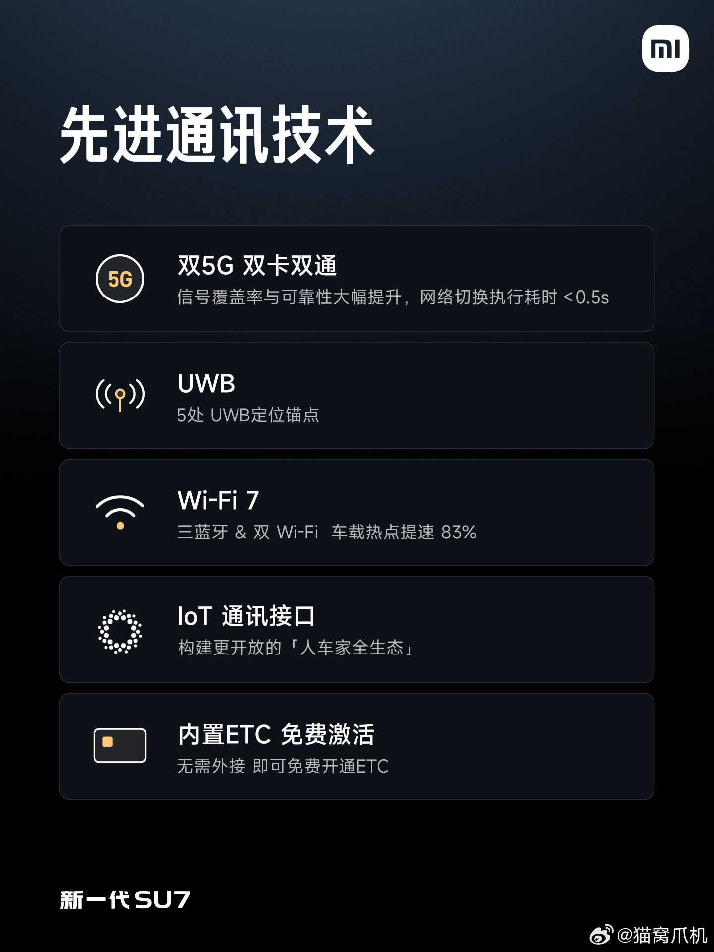 新一代su7新一代SU7智能座舱硬核升级✨搭载第三代骁龙8移动平台,配合NVIDIA DRIVE AGX ThorThor芯片,700TOPS超强算力,辅助驾驶与车机流畅度拉满。通讯配置也超顶:双5G双卡双通、Wi-Fi 7、5处UWB锚点,还有IoT接口与内置ETC,人车家无缝互联,科技感拉满!