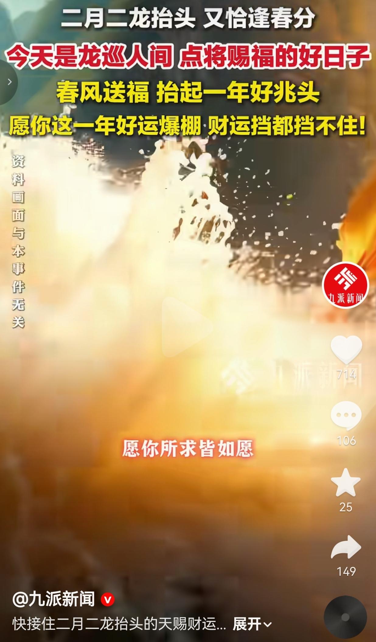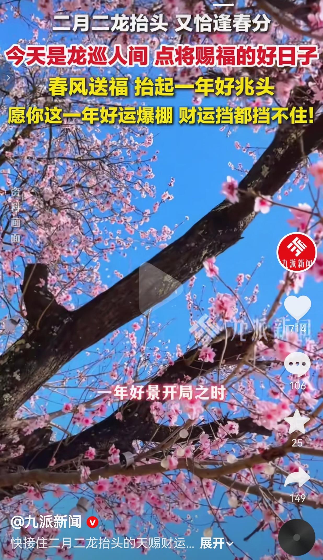 二月二遇上春分!今天不仅要剃龙头,更要接住这一年的好运气! 今天刷到新闻才反应过来——3月20号,农历二月二龙抬头,又刚好撞上春分!这可是几十年难遇的好日子,龙巡人间、点将赐福,春风和好运一起撞进怀里,想想都觉得暖! 我盯着视频里开得热热闹闹的桃花,还有那金光闪闪的龙形画面,突然就想起小时候奶奶说的话:“二月二剃龙头,一年都有精神头;春分昼夜平,日子越过越顺心。”那时候不懂啥意思,就盼着能去理发店剪个新发型,吃块妈妈做的猪头肉,觉得这就是“沾龙气”了。 现在长大了才明白,老祖宗传下来的讲究,哪里是迷信啊?分明是给普通人的一份温柔盼头。就像这次龙抬头和春分撞在一起,一边是“龙抬头”的昂扬劲儿,告诉我们要抬起头、往前冲;一边是“春分”的平衡感,提醒我们日子要张弛有度,别太急也别太懒。 你看啊,有人忙着去理发店排队,就为了讨个“从头开始”的好彩头;有人在朋友圈晒起了春景,说要把这满树的桃花和好运一起存起来;还有人默默在心里许愿,希望今年的工作能顺顺利利,家人能平平安安,卡里的余额能多涨一点。 其实我们都知道,哪有什么“天赐财运”,真正的好运,从来都是自己挣来的。就像博主铁铁帮粉丝讨回10万定金那样,敢站出来说话,敢为公平较劲,这才是普通人最该有的“龙抬头”——不向恶势力低头,不向困难弯腰,抬起头,就有希望。 今天刷到这条视频的人,不管你现在是在为生活奔波,还是在为梦想打拼,都请你停下来歇一歇:看看窗外的春风,摸摸自己的头发,在心里跟自己说一句:“没关系,慢慢来,这一年,我们都会越来越好。” 愿你所求皆如愿,所行皆坦途,日子蒸蒸日上,财源滚滚挡不住! 最后想问大家一句:你今天为自己许下了什么愿望?你愿意为了这个愿望,抬起头、勇敢地往前走吗?