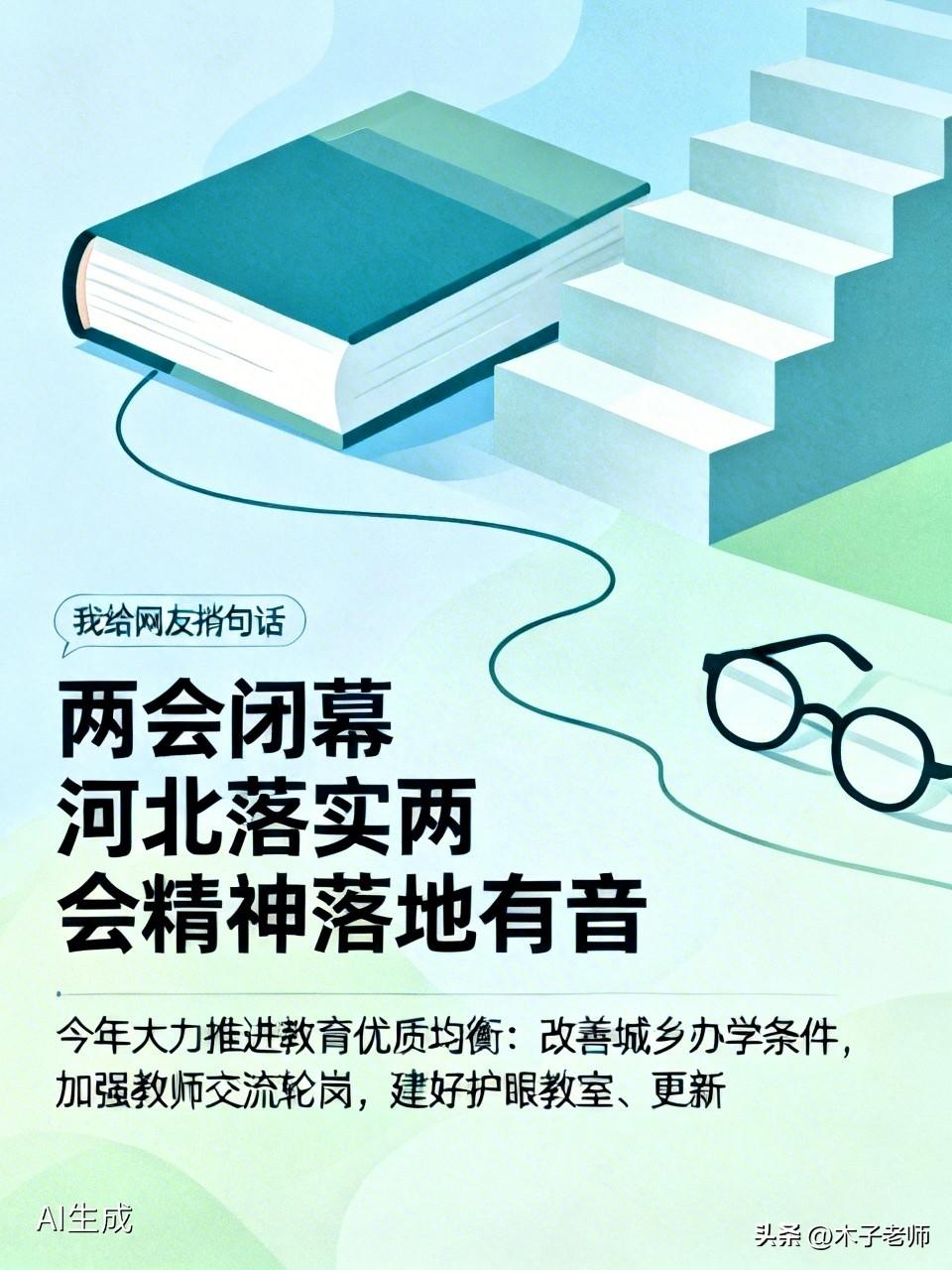 我给网友捎句话→两会闭幕,河北落实两会精神落地有音。 今年大力推进教育优质均衡:改善城乡办学条件,加强教师交流轮岗,建好500所护眼教室、更新体育场地,石家庄新增1万所暑期免费托管学位,让每个孩子都能享有更好的教育。 两会教育新建议