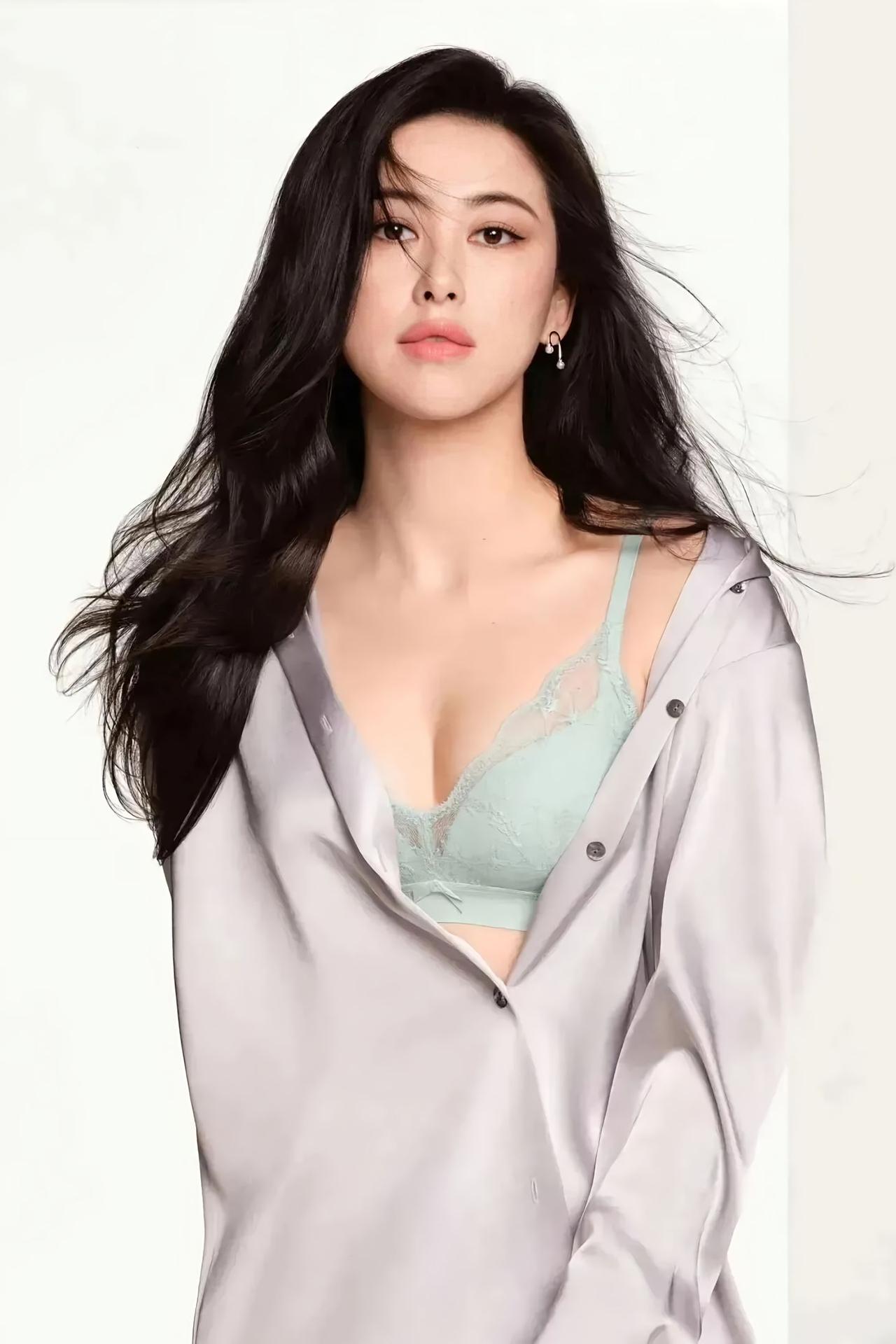 朱珠 黑发散落在肩颈, 像未被驯服的夜, 拂过真丝的褶皱, 在光里洇开温柔的弧度