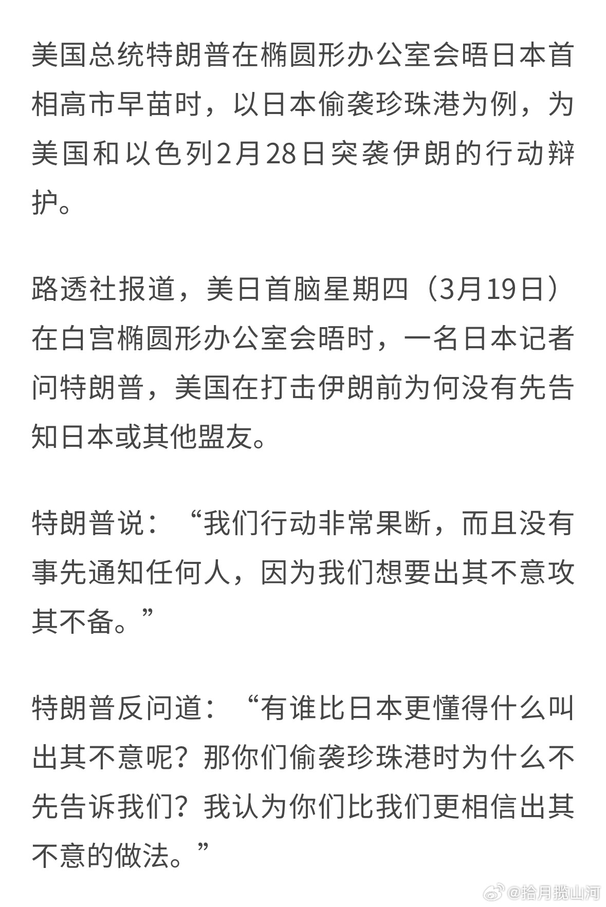 特朗普称美以突袭伊朗如同日本偷袭珍珠港。高市早苗:? 特朗普见高市早苗提偷袭珍珠港