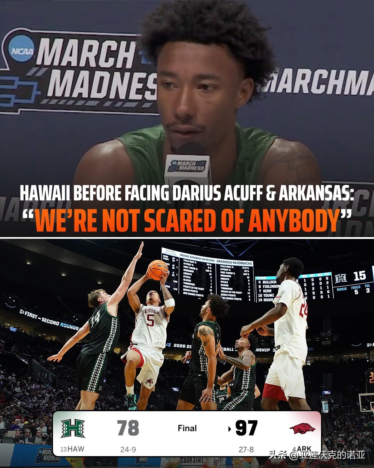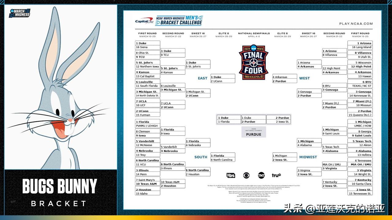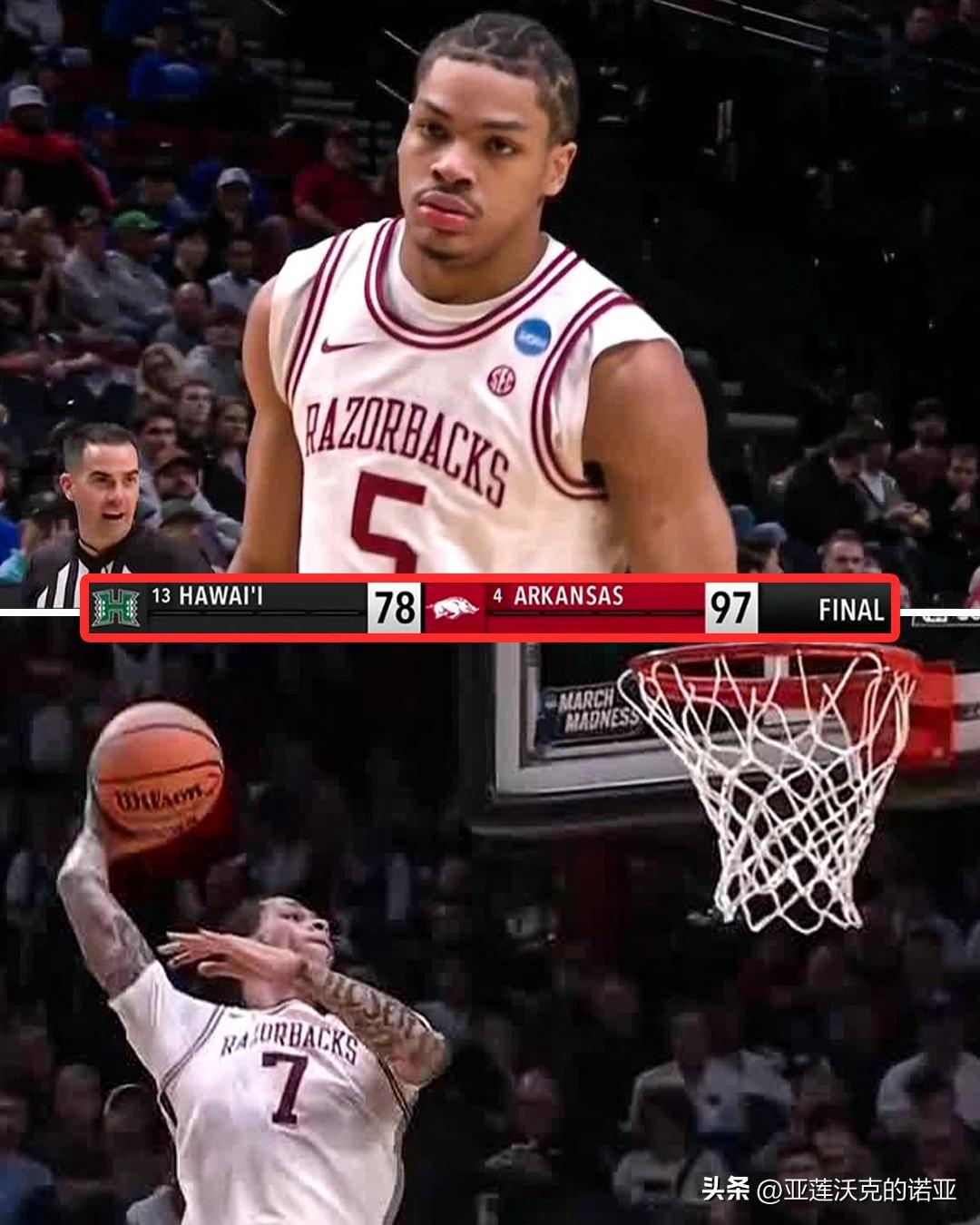阿肯色Darius Acuff 24分7助攻,Meleek Thomas 21分5助攻,疯狂三月 第一对各自得到20分5助攻的新生组合,阿卡夫与托马斯是自2016-17赛季肯塔基蒙克和福克斯以来第一对场均得分超过15分的SEC联盟新人后场,Bugs Bunny预测的前八场全对,猜中High Point淘汰威斯康辛。