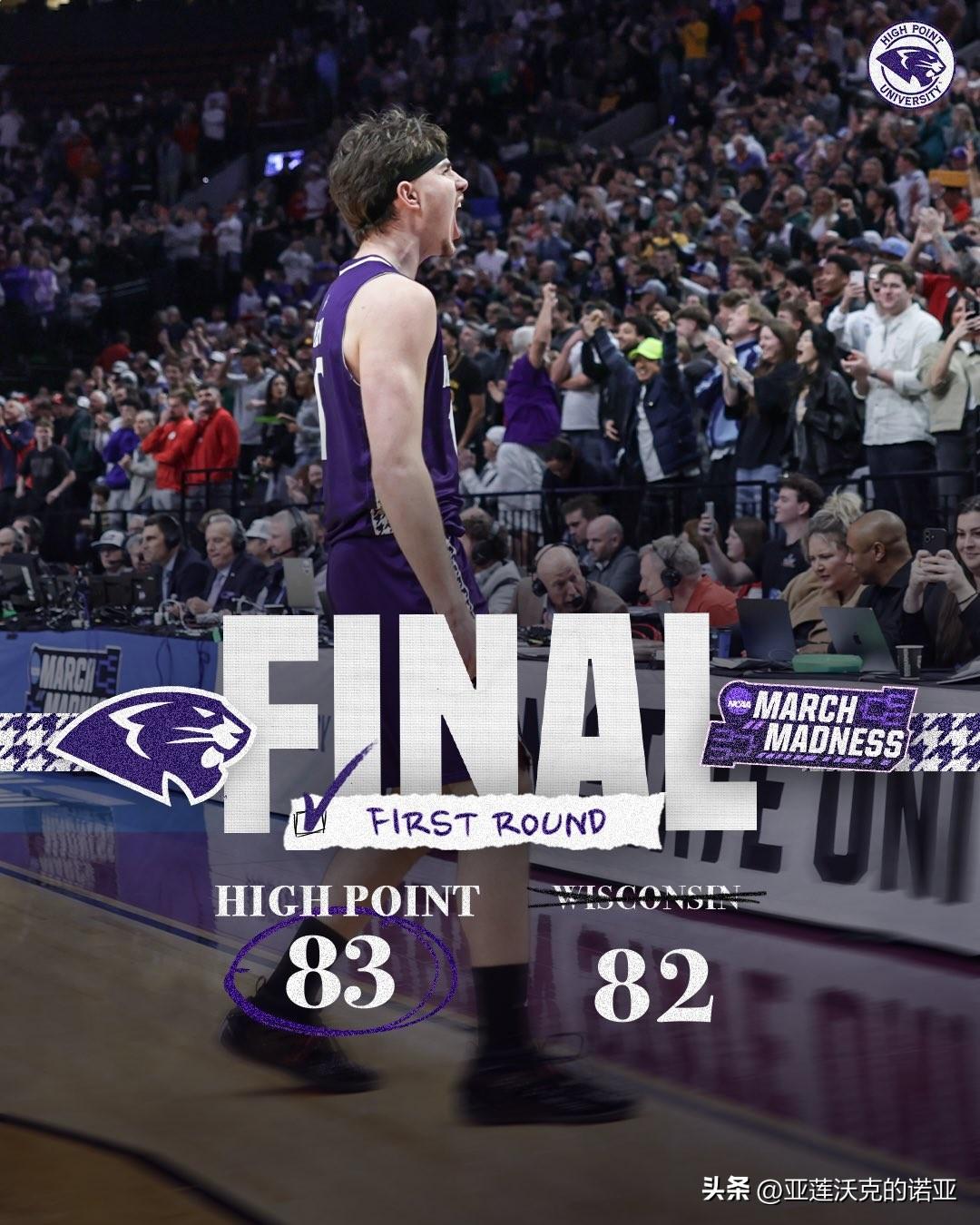 首轮64进32强第一天的前八场,两场以下克上,西区12号种子High Point险胜5号种子威斯康辛大学拿到疯狂三月 队史首场胜利,东区9号种子TCU击败8号种子俄亥俄州立,其他高顺位种子悉数晋级第二轮,就杜克大学差点阴沟里翻船。