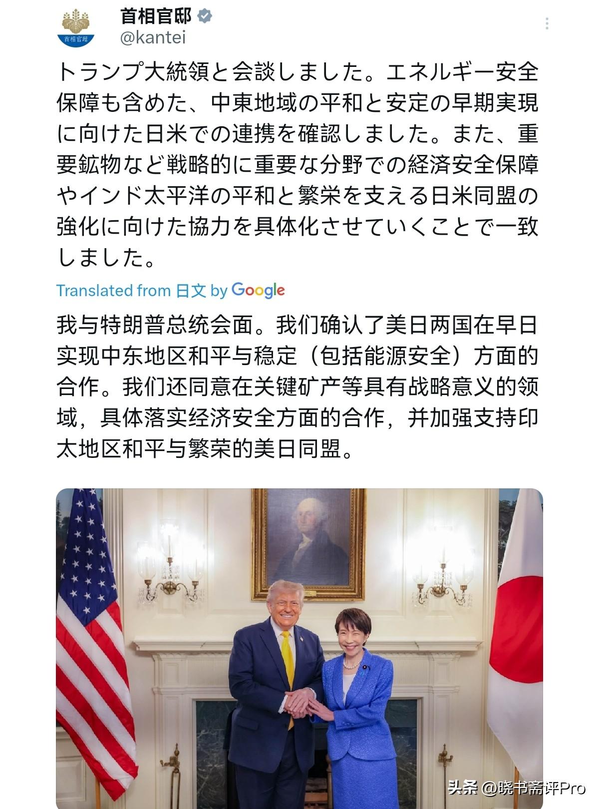 半个字都没有提台湾!截止到目前为止,特朗普与高市早苗会晤,竟然半个字都没有提台湾!3月20日,高市早苗与特朗普会晤之后,日本官方的新闻稿是,我与特朗普总统会面。确认了日美为早日实现包括能源安全保障在内的中东地区和平与稳定的合作。此外,双方还就加强在重要矿物等战略重要领域的经济安全保障和支撑印度太平洋和平与繁荣的日美同盟的合作达成了一致。 很显然,这一份日本方面的声明强调了三点,其一,中东问题与能源安全。其二,稀土供应链自主。其三,深化日美同盟关系。说实话,以前美日会晤,美日高低也会说一句,反对任何以武力单方面改变现状的行为。但是,这一次高市早苗访美台湾议题像消失了一样,这当然不是偶然。 而是台湾问题被刻意隐藏起来了,美国是不愿意谈,日本则是不敢谈。为什么这一次美日不谈台湾问题呢?原因只有一个,那就是我们此前已经明确警告美国,美国必须慎之又慎的处理台湾问题。现在特朗普想要访华,美国当然不能因为台湾问题而让已经推迟的访华行程在生变故。 事实上,中日关系正是因高市早苗的挑衅言论,而急剧恶化。美国跟日本谈台湾问题,美国担心我们会认为美国是在给日本作背书,这会让事态更加严重。美国主动不谈,而日本看见美国这样的态度,当然不敢谈。而高市早苗不仅不敢谈,而且还当面对特朗普保证称,她对中日关系保持开放,愿意与中国对话。一句话,台湾问题眼下成为了禁忌,美国确实在很慎重的对待。