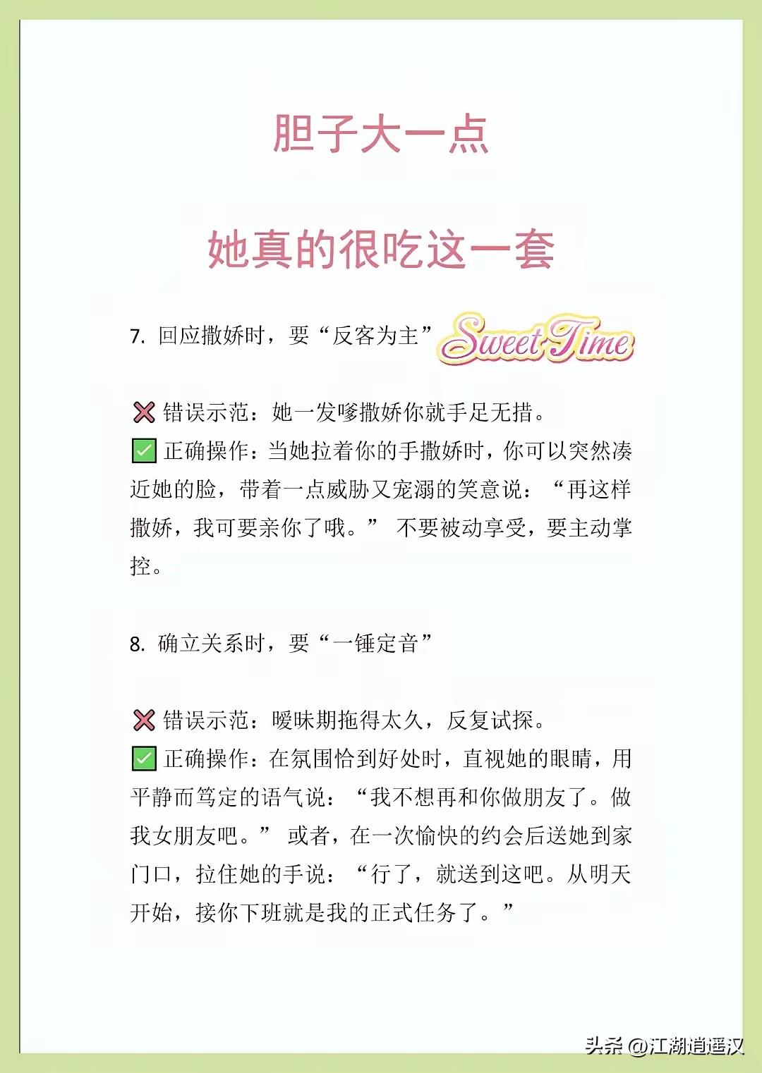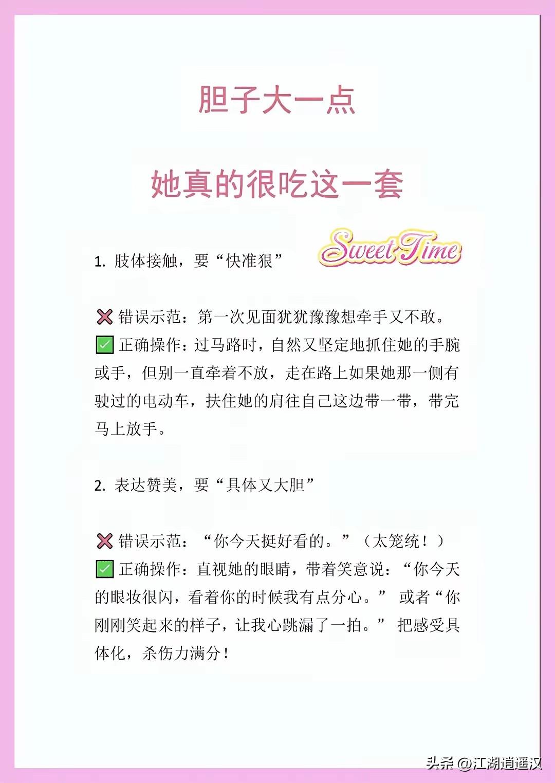 伟大的鸡博士赵山河说:看到自己喜欢的女孩子一定要胆大心细脸皮厚。!当她喜欢你时,你说什么她都能一笑而过,还能继续和你聊,对你不感冒时,你说得再多都无济于事!前提是:如果是相亲认识的,必须要女方明确表示可以以男女朋友相处的情况下才能进行上述动作,否则都会被任务耍流氓、普信男、猥琐男!