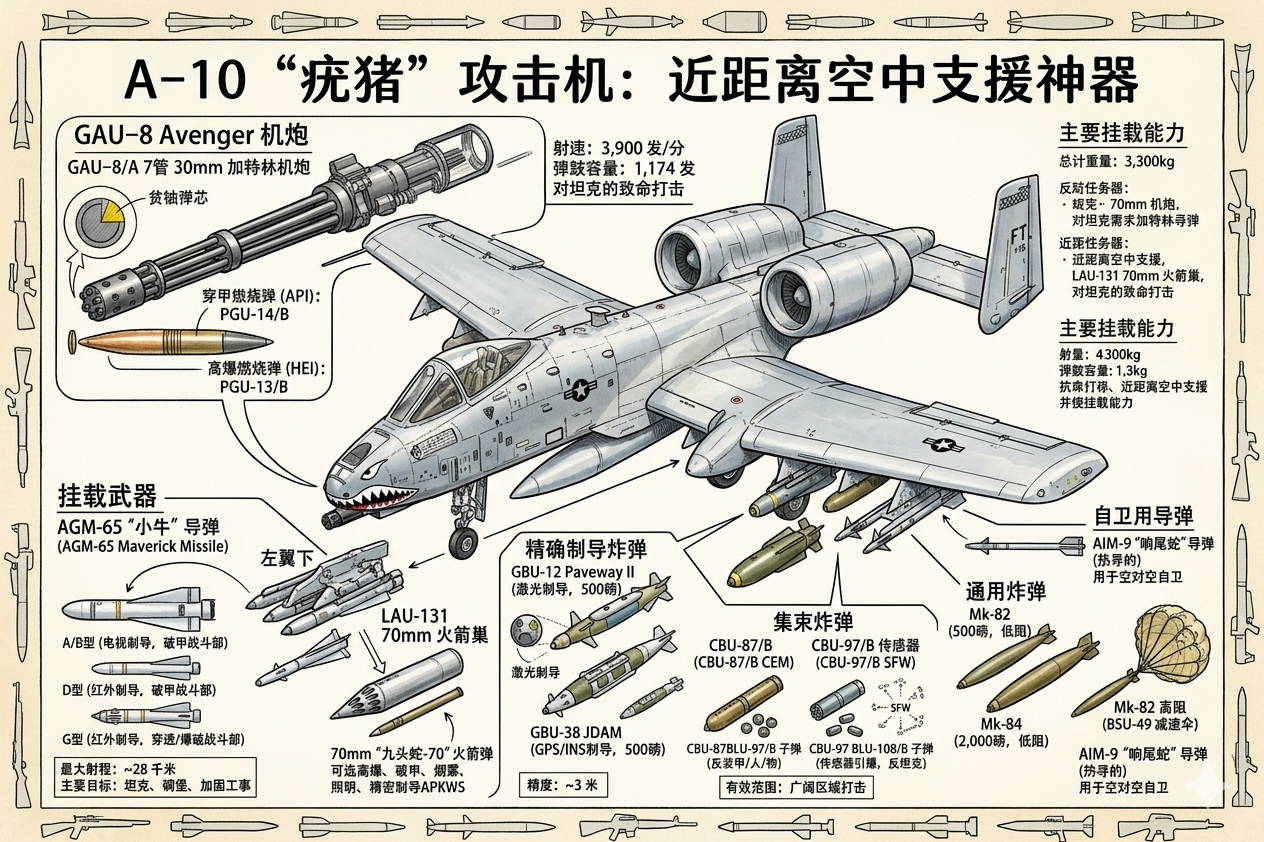 尽管美国空军长期计划退役A-10(原计划2029年前全部退役),但2025年底国会干预,将2026财年退役数量限制在59架,并拨款现代化升级,包括翼梁更换等,让更多A-10继续服役。这直接促成了其在2026伊朗冲突中的部署。