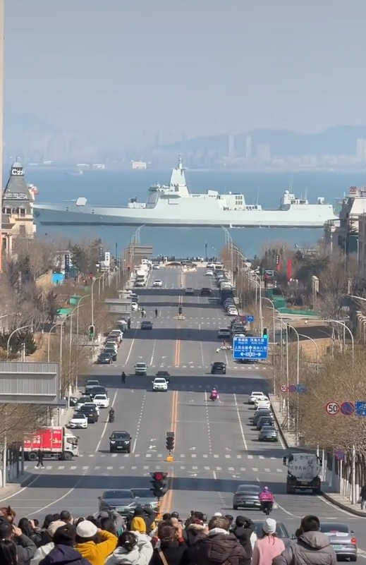 055大驱海上训练画面曝光!渔民视角下,109舰主炮转向瞬间太燃了!虽然,官