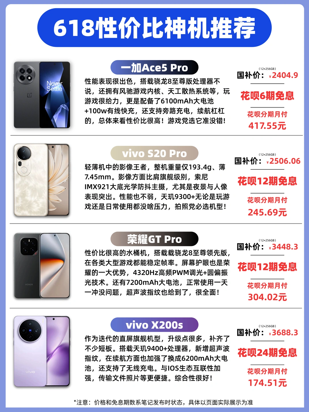今日也是依旧推荐四款手机,各个都是性价比机型神机,续航/性能/拍照都是顶级喔👇都可以叠加花呗分期免息,可以说是闭眼入👌
