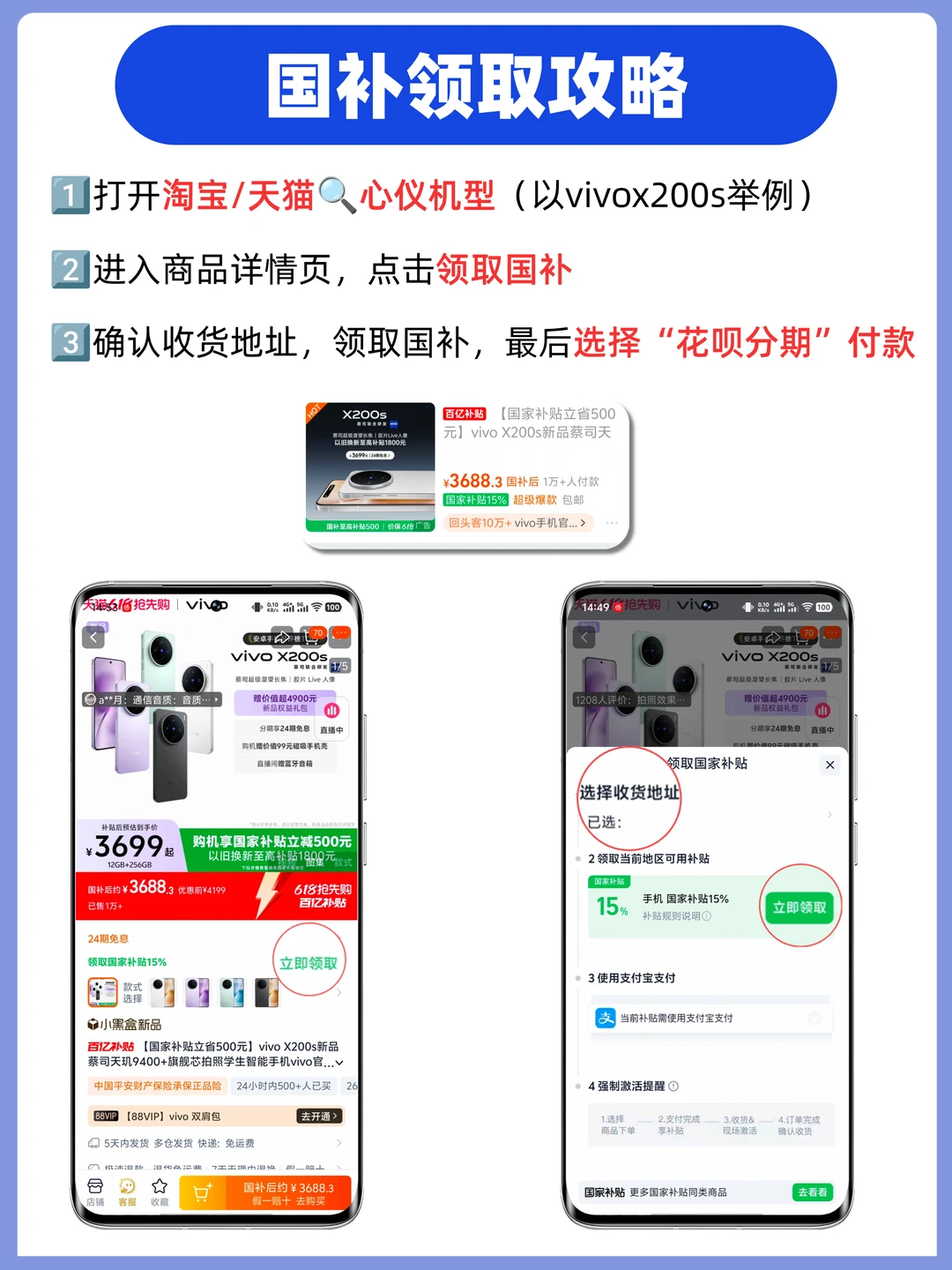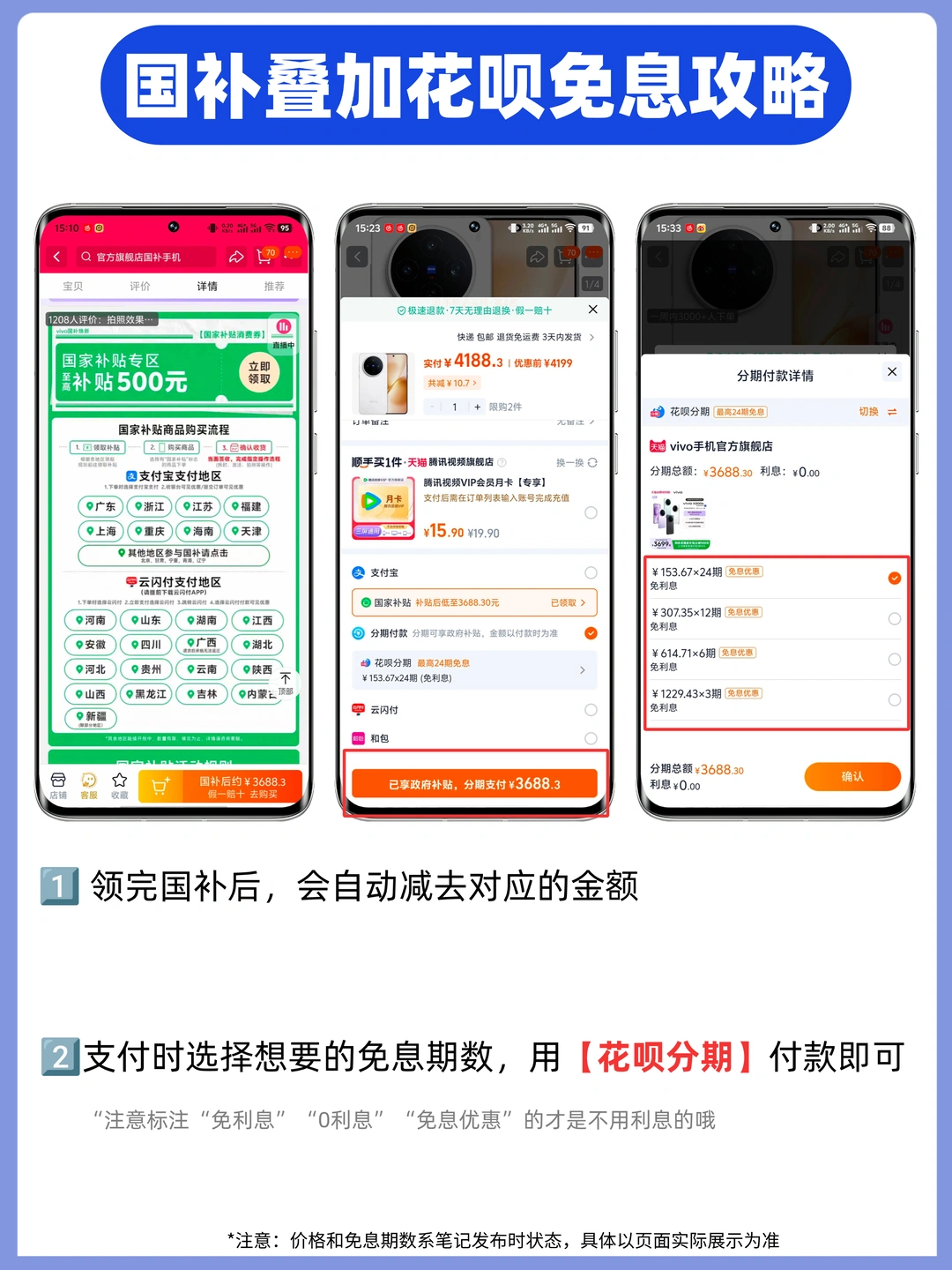 💡国补叠加花呗分期免息步骤: