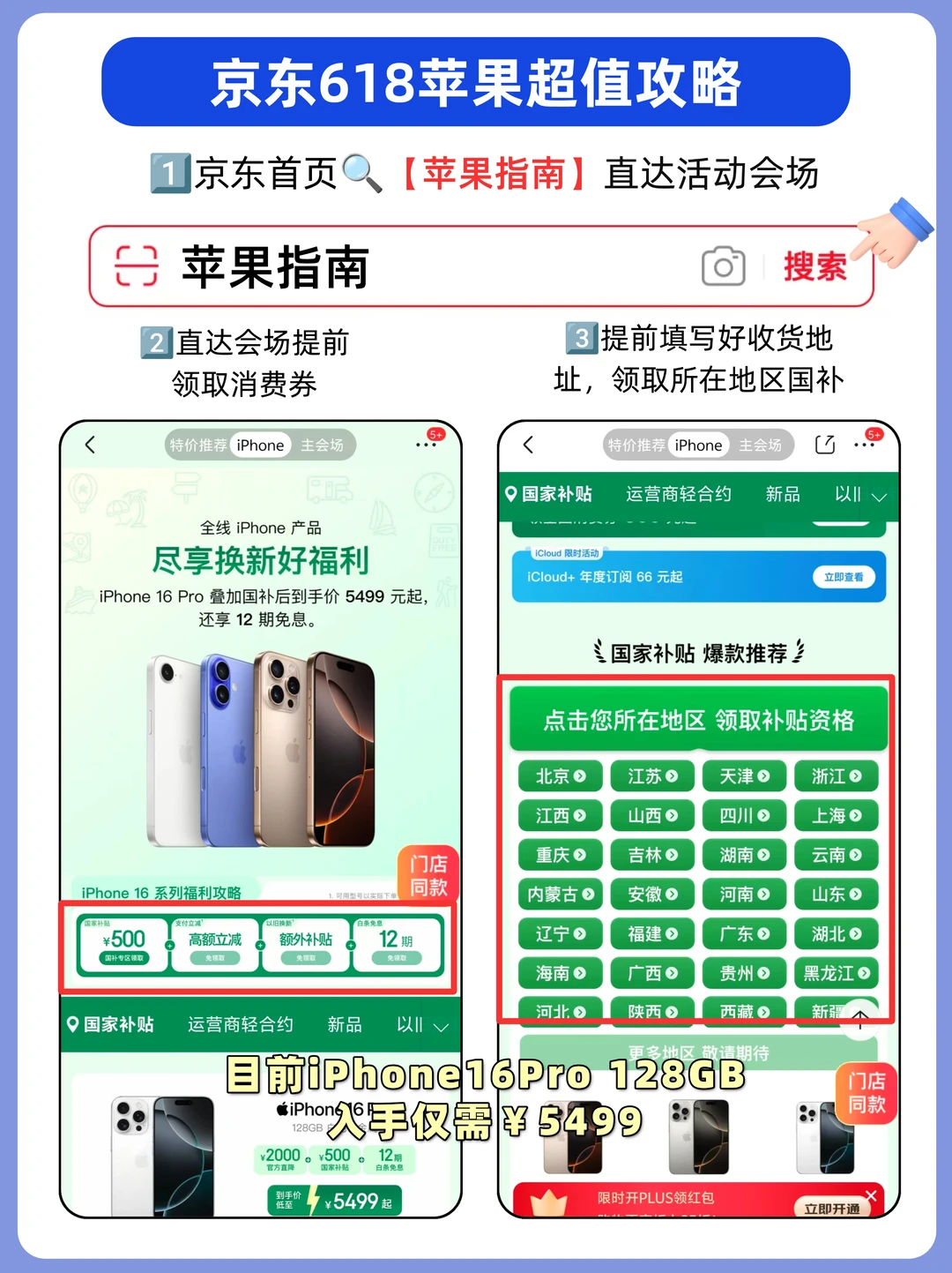 京东这波618太狠了!直接把iPhone16Pro给干到5499起!另外根据内部消息今晚还有大动作,iPhone各系都会开始降价,提前告诉各位宝子操作流程👇