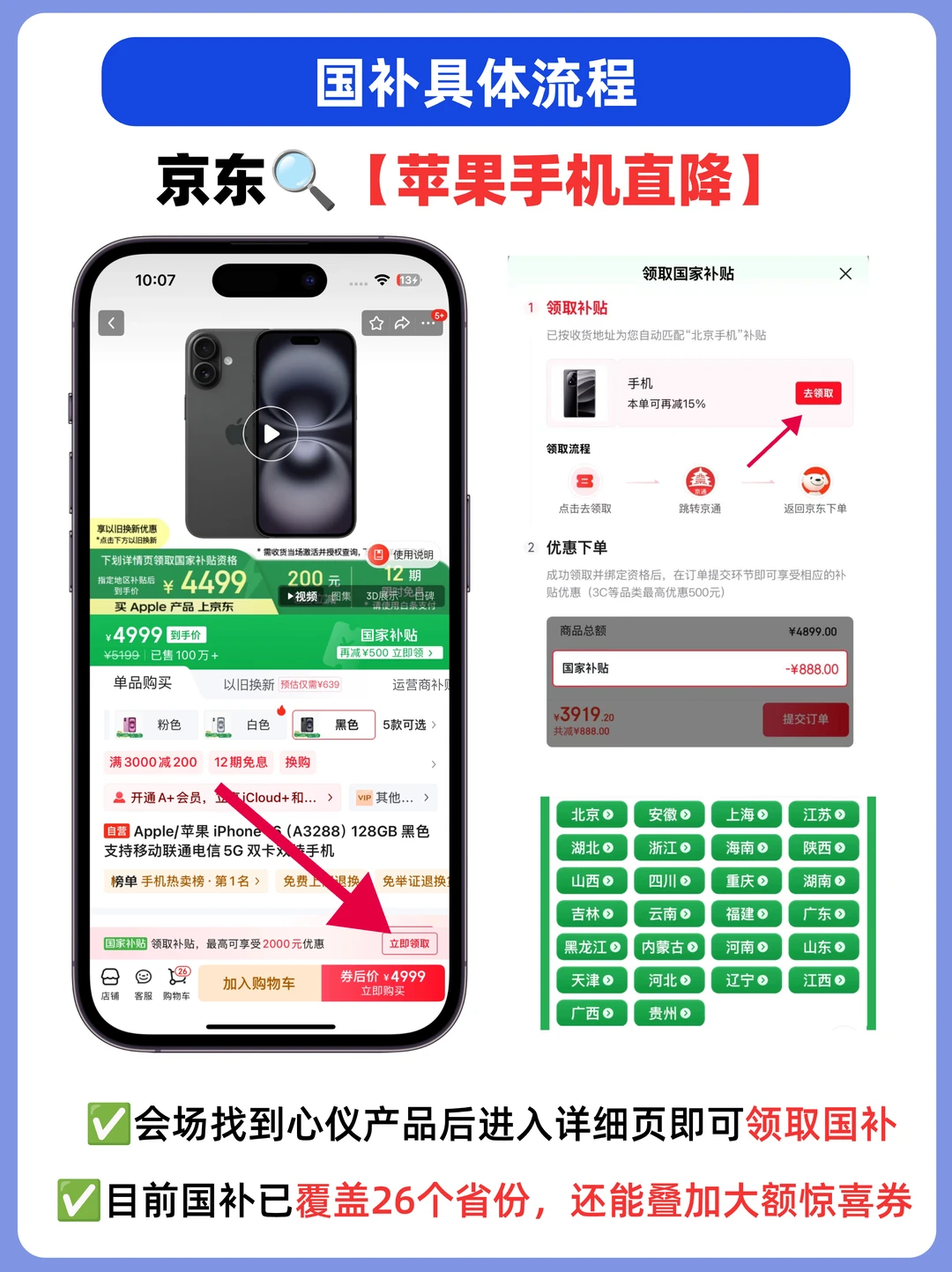 京东🔍【苹果手机直降】可以直达会场,把能领的券都领了,然后进详情也领国补下单