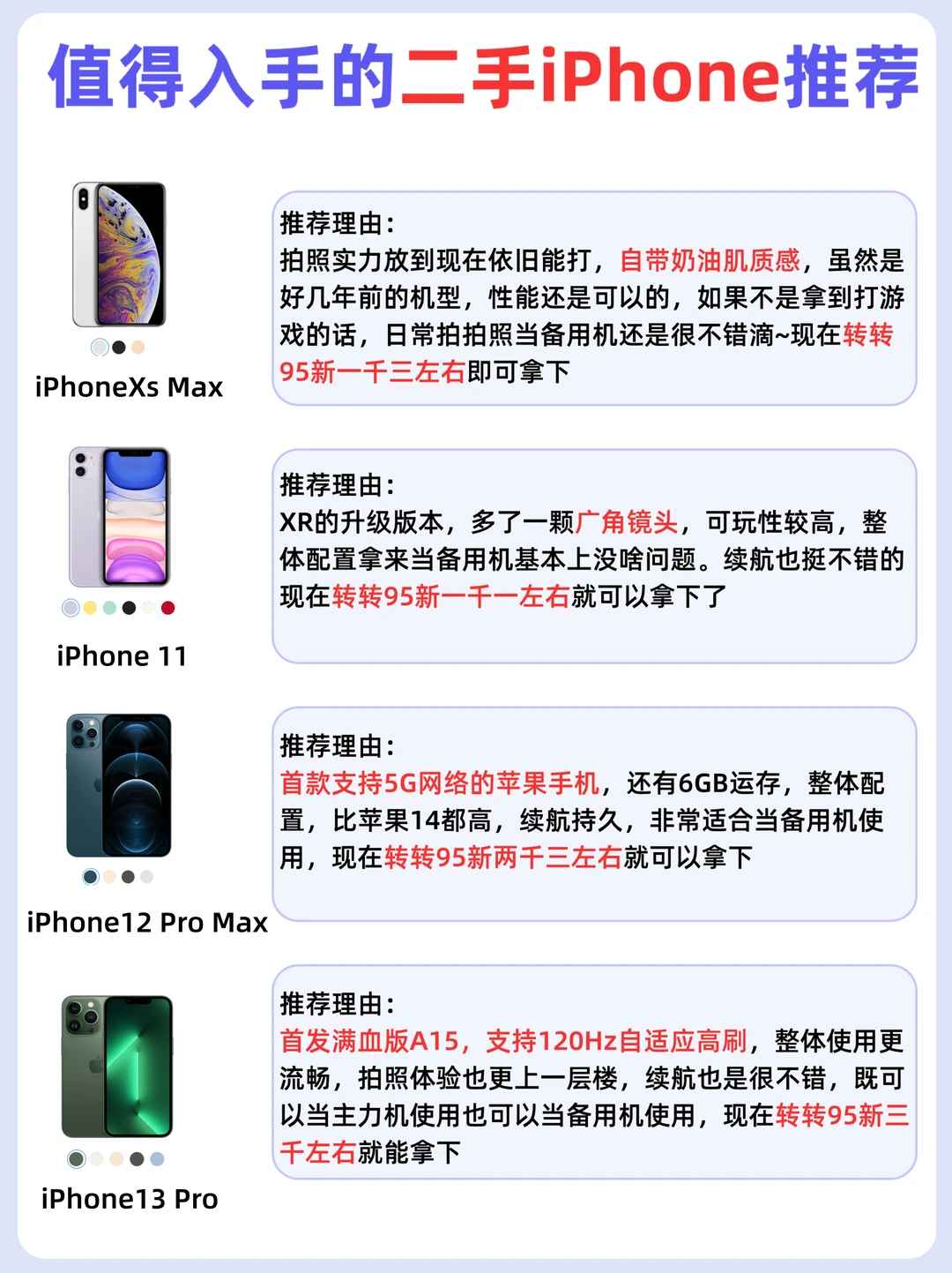 最近不少宝子问我iPhone哪些机型适合当工作机或者备用机,平常拍拍照📸就行之类的,下面我就推荐几款适合当备用机或者工作机的iPhone📱