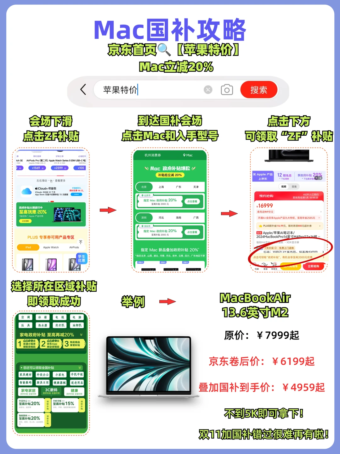 🔺以上都能叠加京东立减!像iPhone15不到5000即可入手!MacBookAir13.6英寸M2到手只需4959r!