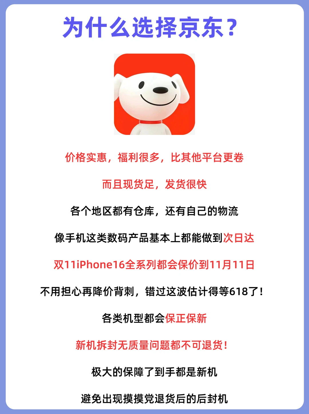 🔺而且现在京东现货足,像手机这类数码产品都能次日达,保正保新,无质量问题都不可退,能避免摸摸党退货后的后封机~