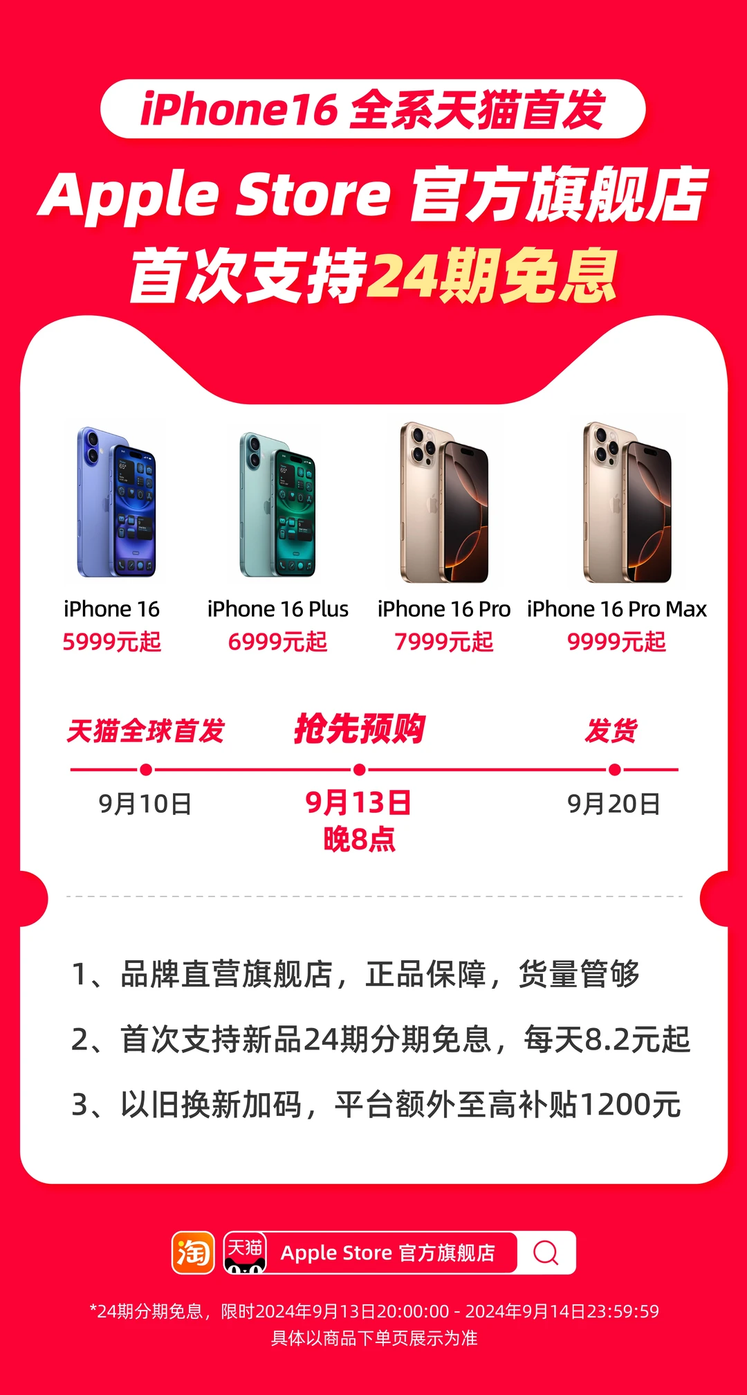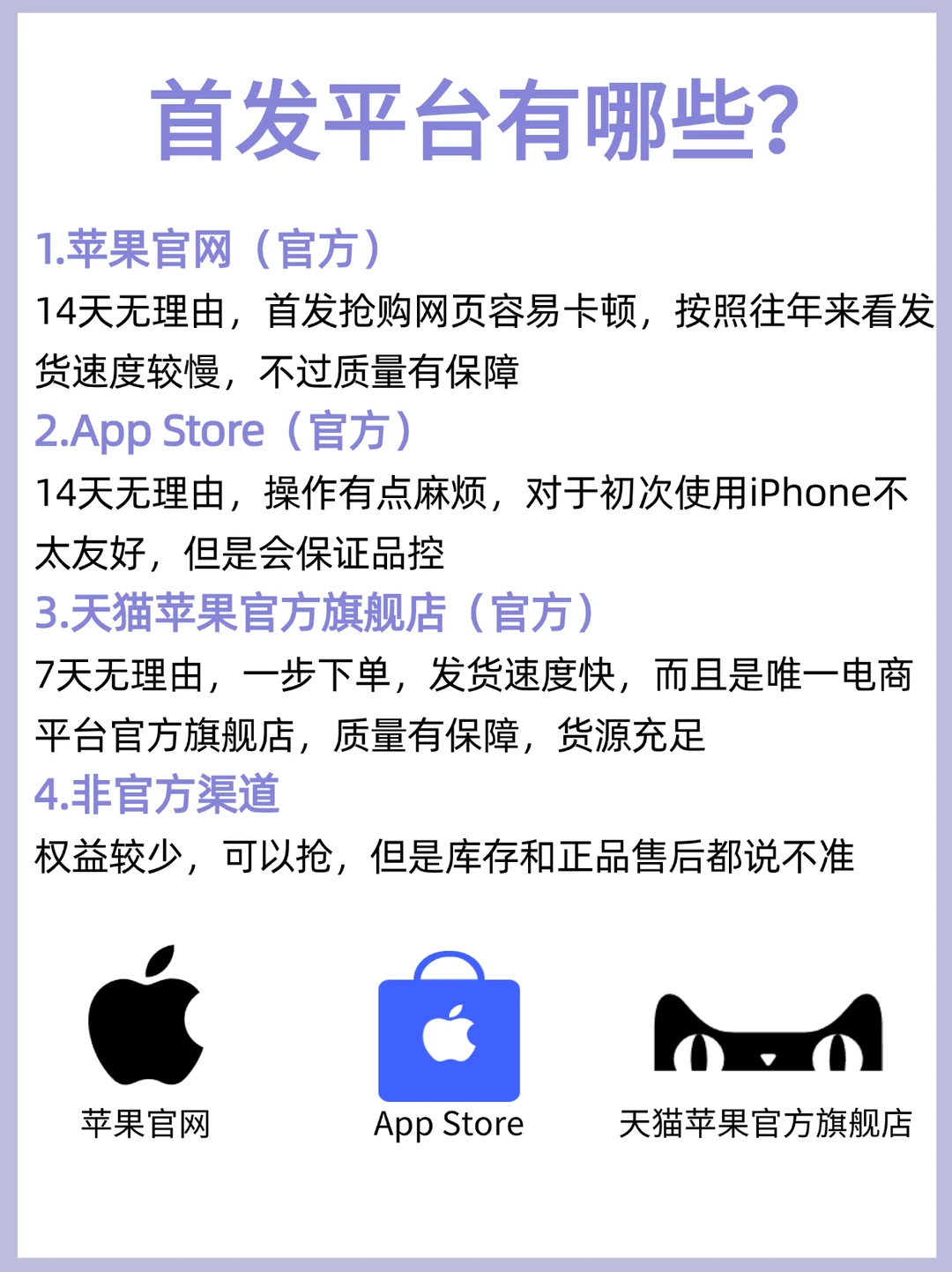 购买建议:想抢首发的宝子可以考虑天猫苹果官方旗舰店,抢购操作简单,唯一官方旗舰店品质有保障,别的平台都20号才开售,天猫13号和官方同步上新,而且货源嘎嘎足,主打稳健~