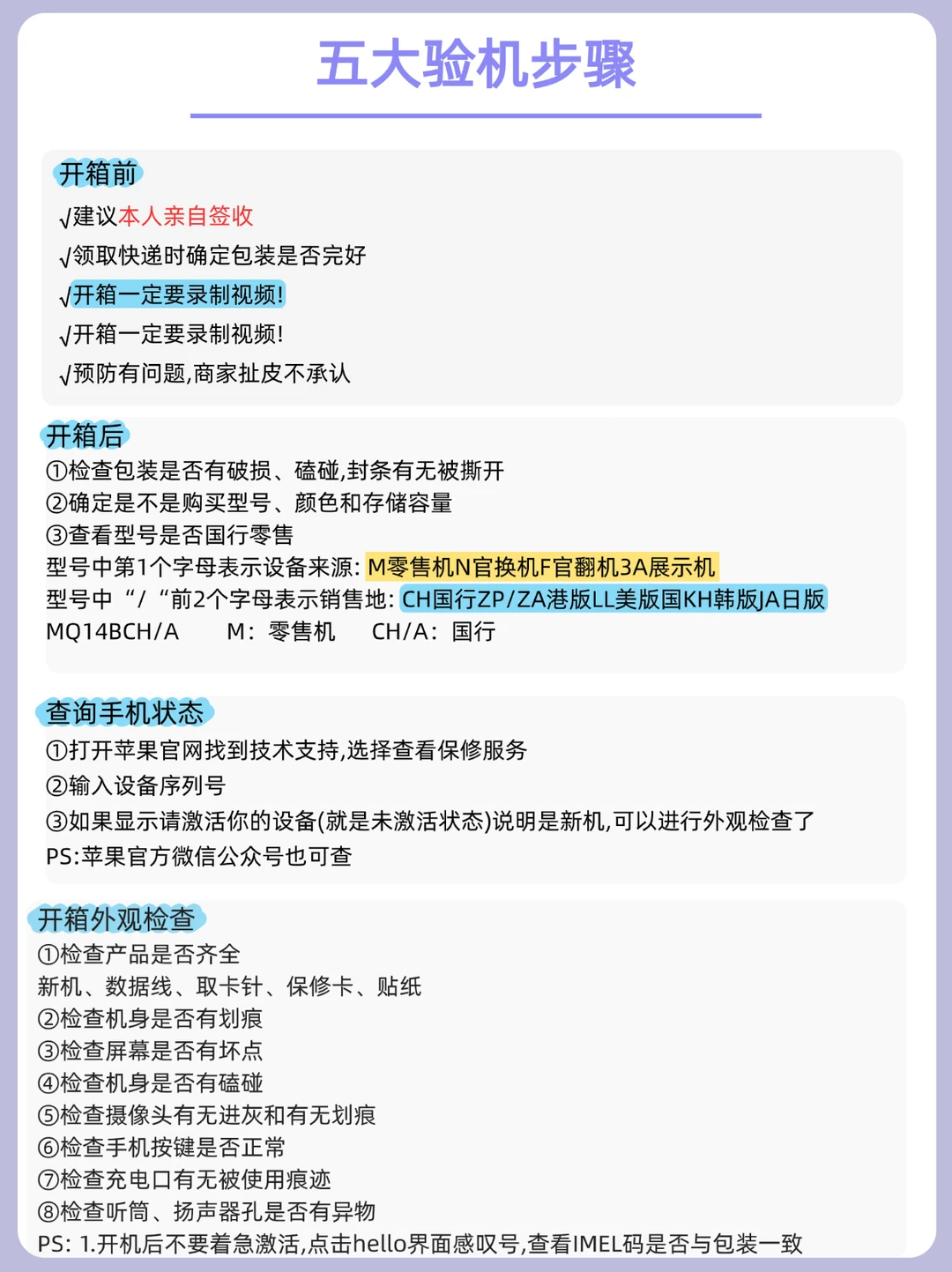 先不要联网,看一下产品有没有齐全,机身是否有损坏之类的,开机后查看IMEL码是否和包装一致