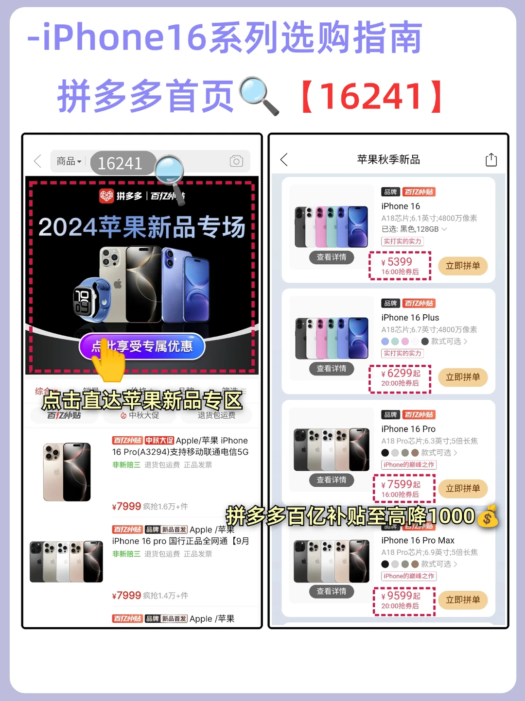 直接在拼多多首页🔍 【16241】直达苹果新品专场