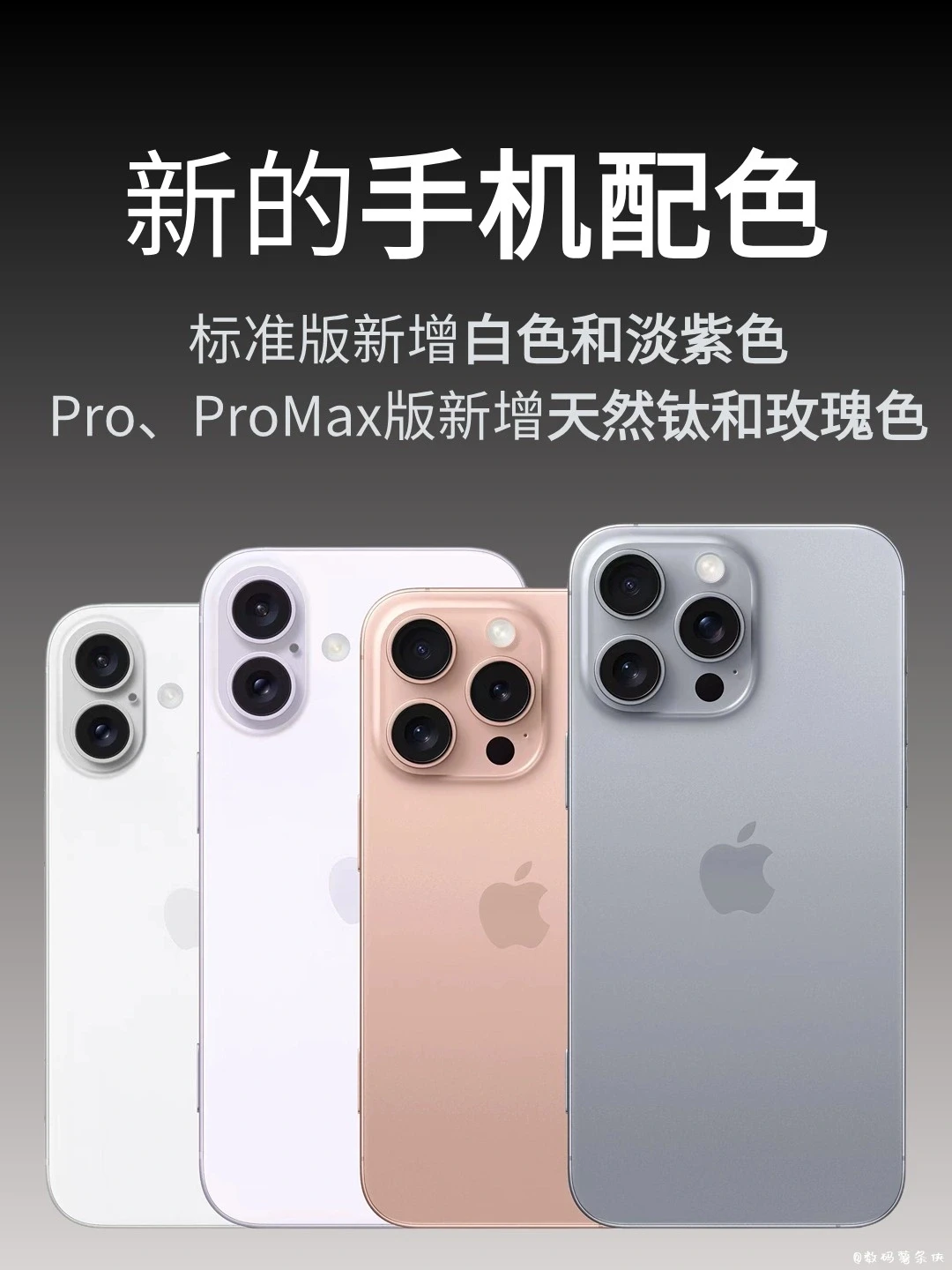 1⃣️摄像头排列改为竖向 2⃣️电池容量增加 3⃣️新增手机配色 4⃣️加入拍摄按键 5⃣️新的静音按键设计 6⃣️加了AI的A18芯片 7⃣️Pro以上机型采用WiFi7 8⃣️尺寸改为6:3和6:9 9⃣️全新的散热系统 . 你们觉得怎么样呢,欢迎大家讨论[微笑R]