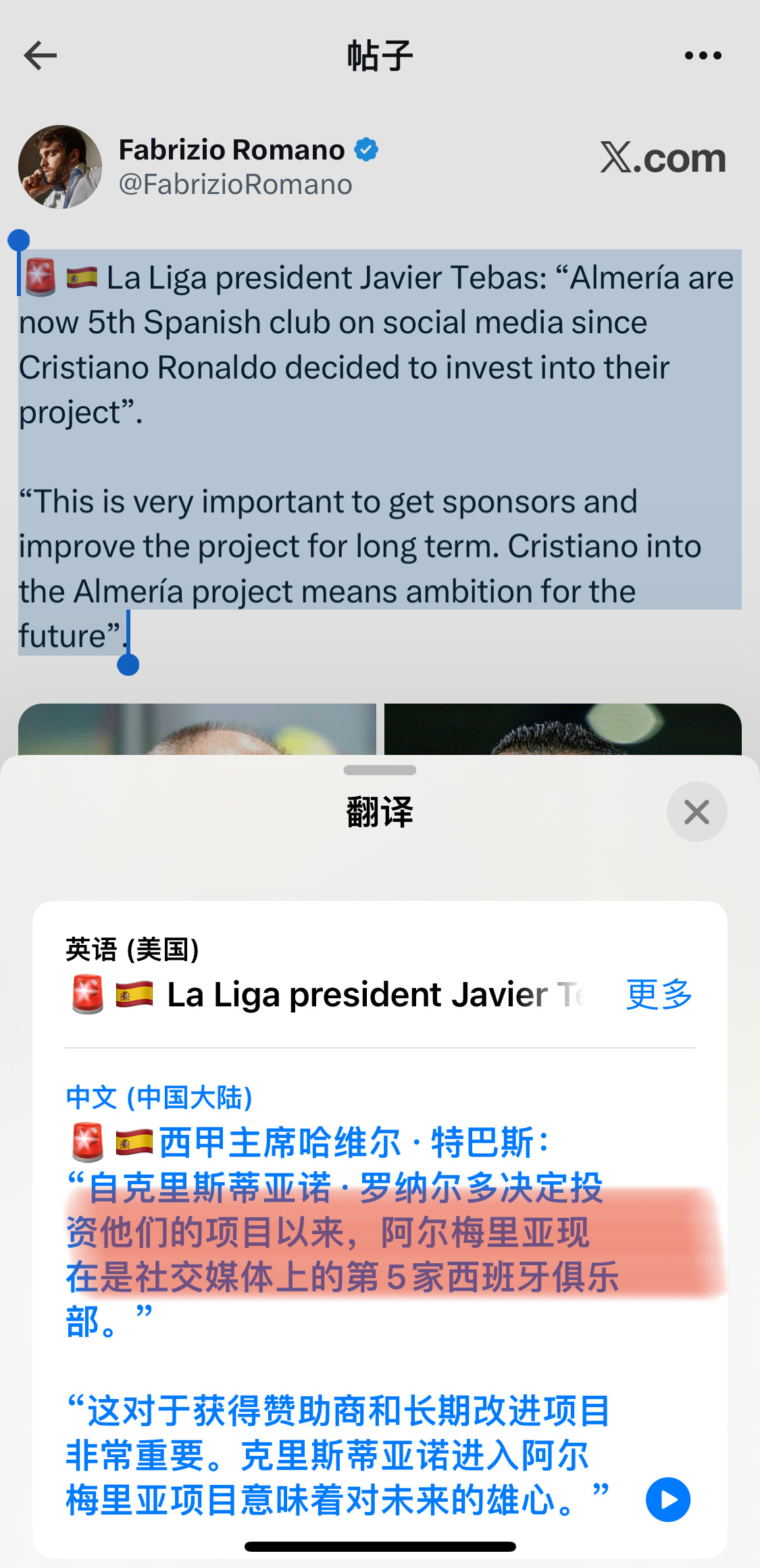 C罗收购西乙阿尔梅里亚股份C罗只是收购了一下股份,阿尔梅里亚俱乐部在社媒排行蹭蹭