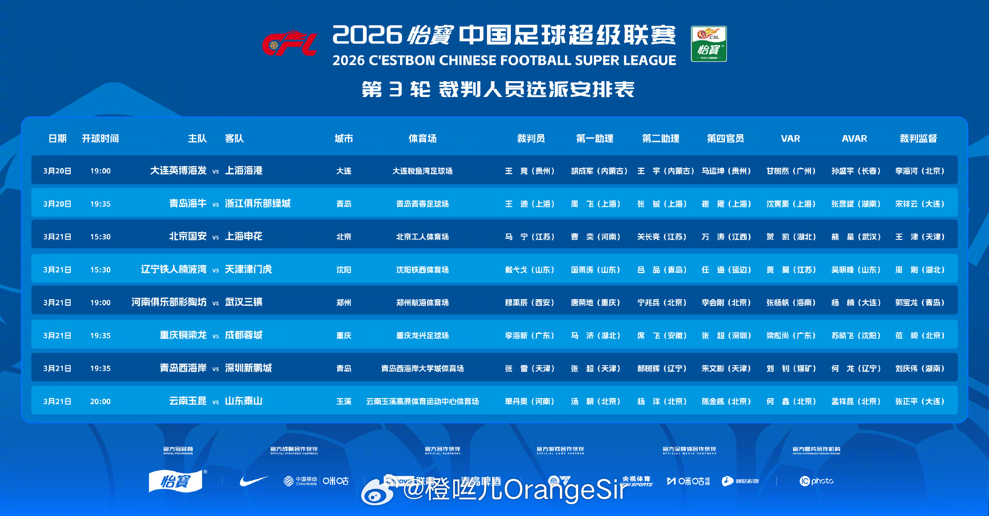 山东泰山vs云南玉昆的裁判出炉主裁判:单丹奥,VAR:何鑫!除了主裁是河南的,其他的都是一水北京的!此外麦麦提江和唐顺齐并没有出现在这一轮中超全部赛事的执法裁判名单中!云南玉昆vs山东泰山山东泰山中超联赛
