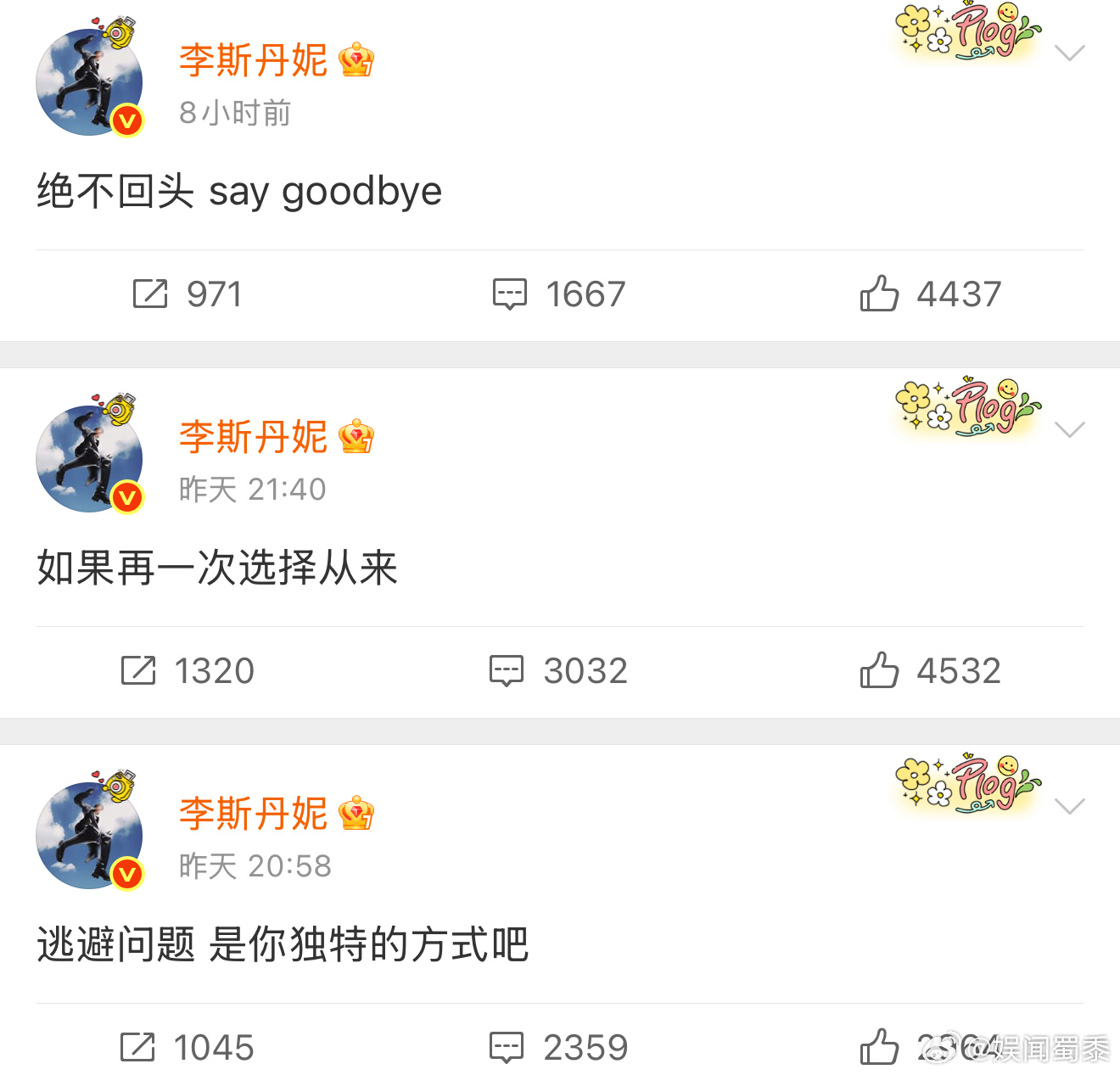 李斯丹妮说的是谁 李斯丹妮晚上连续发三条博文,这是在说的谁呀,这么突然的吗 看评