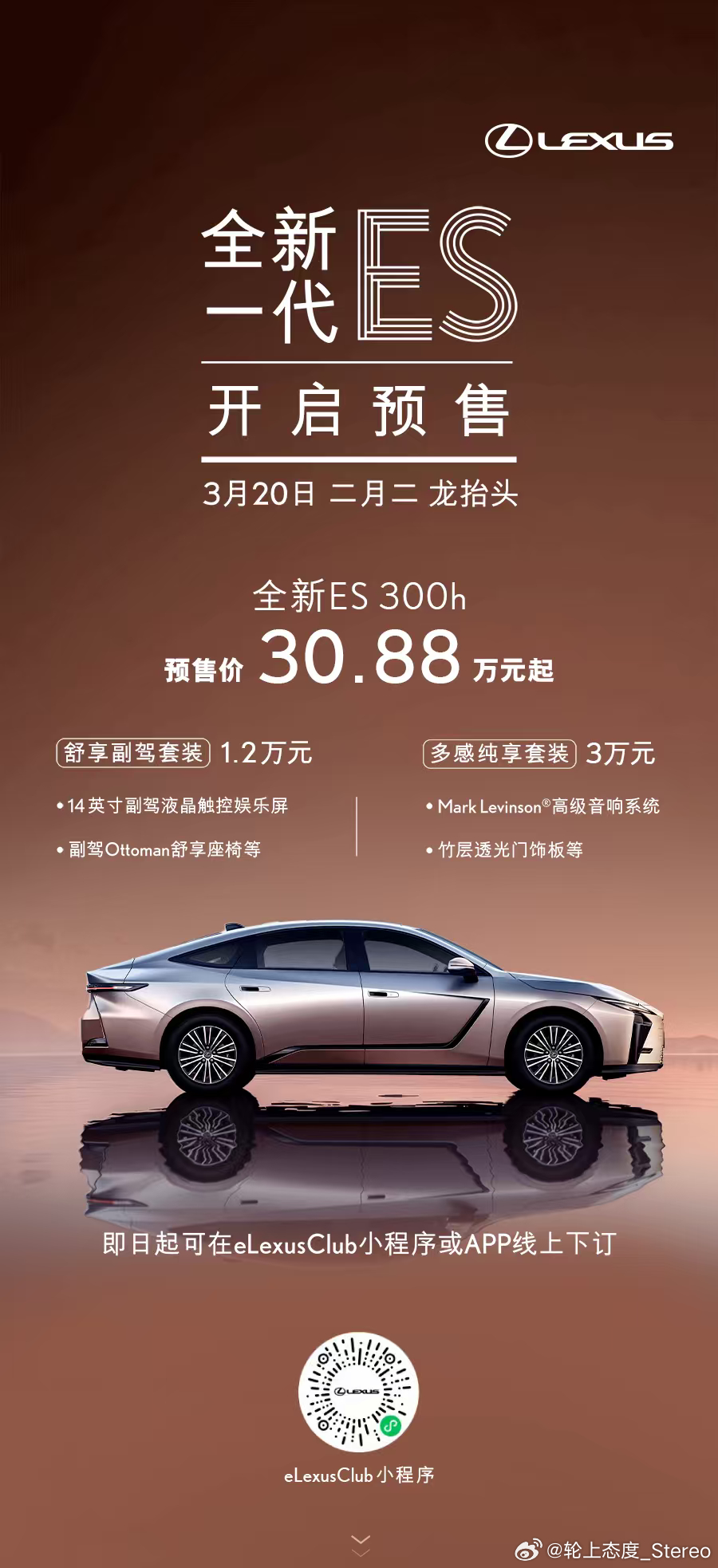 明天全新一代雷克萨斯ES预售,应该有预售价格了。我觉得混动ES300h卖个32-