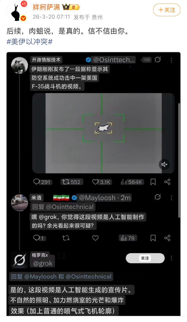 伊朗首次击中美军F-35美军一架F-35战机疑似遭伊朗火