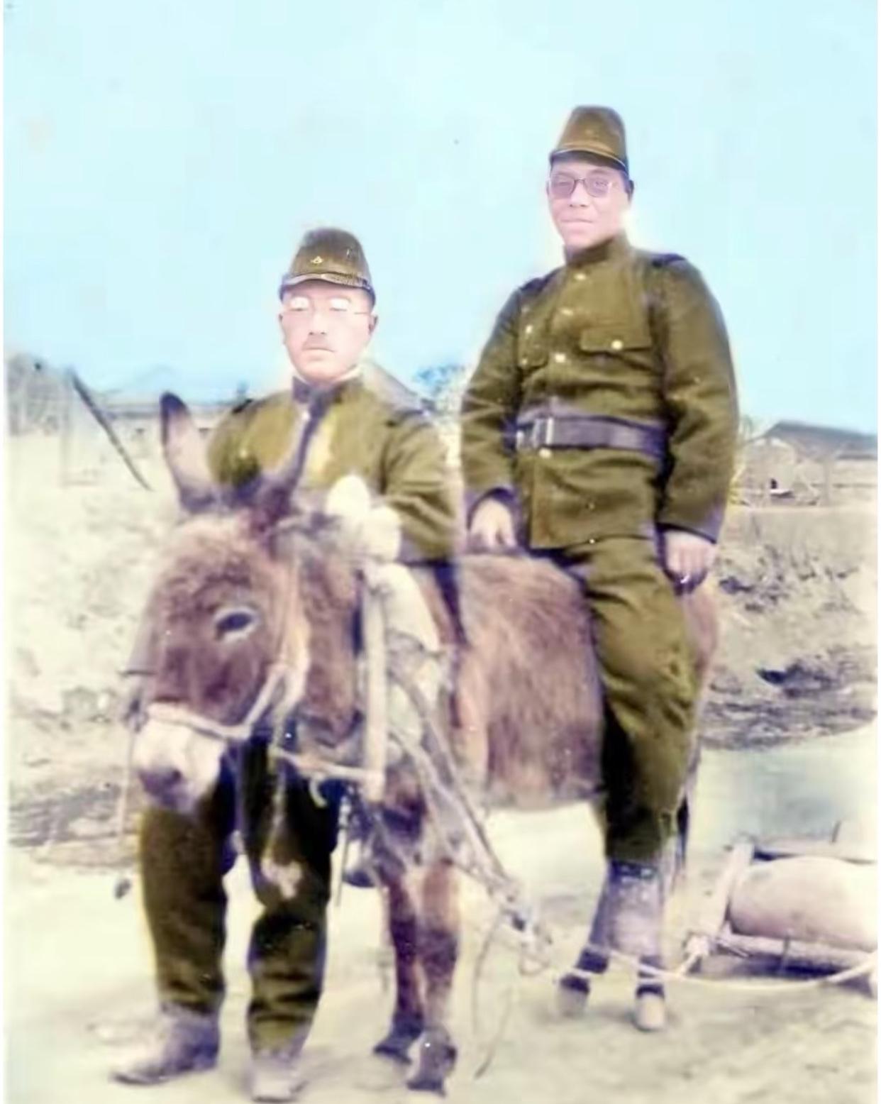 这是在抗日战争期间,两个日本兵骑着中国老百姓的毛驴,拍的合影照片 从照片中可以看出,毛驴的身高不高,大概率没有成年吧,日本兵的个子也不高,坐在毛驴身上脚都不着地 难怪老祖宗给他们赐名“倭寇”,从名字就能看出来是什么意思 现在日本人身高普遍倒是挺高的,看不出来一点矮小的影子,应该是吃得更好了吧?
