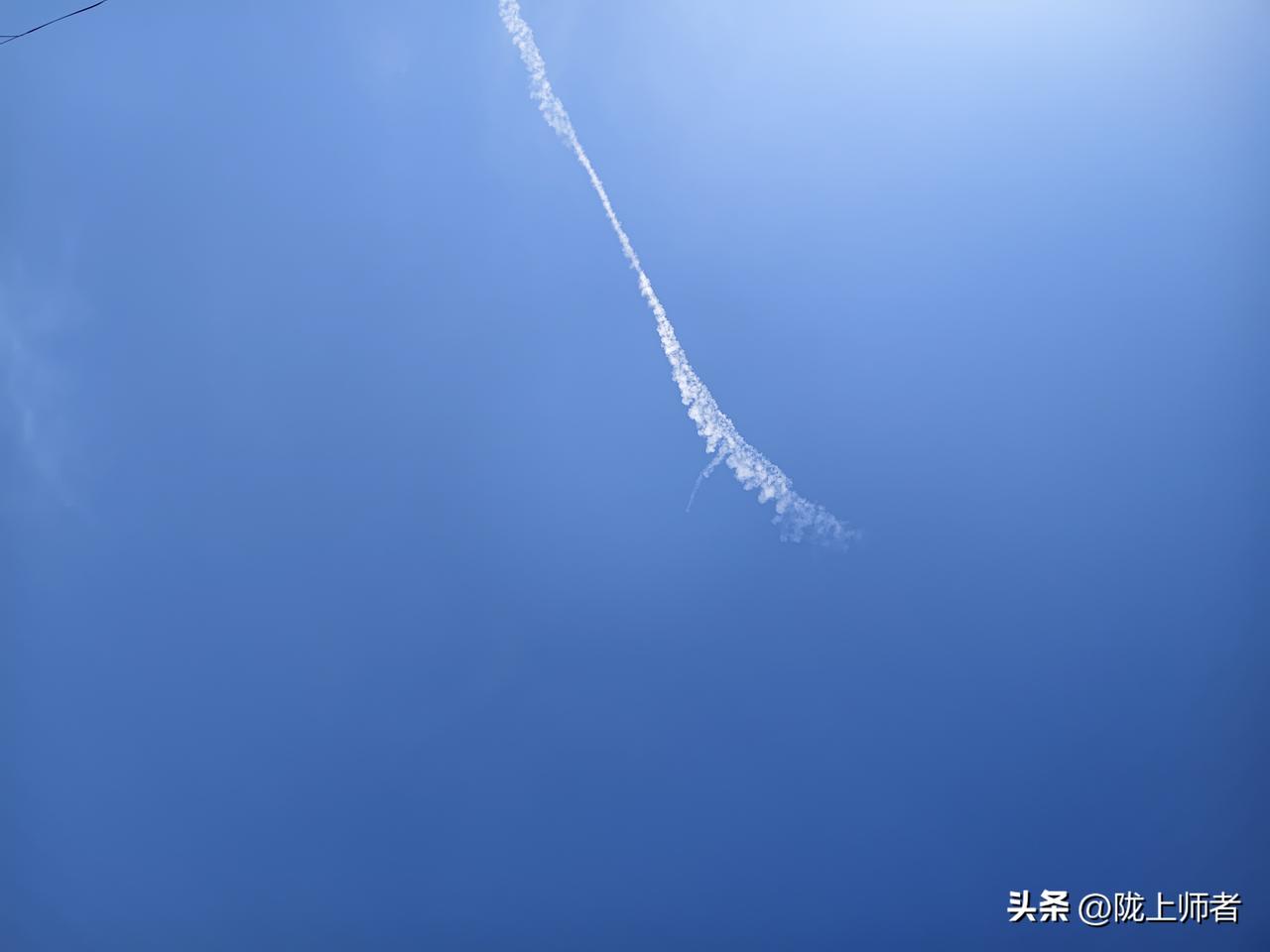飞机飞过在天空留下的痕迹!是烟似云,不知道污染不污染空气?