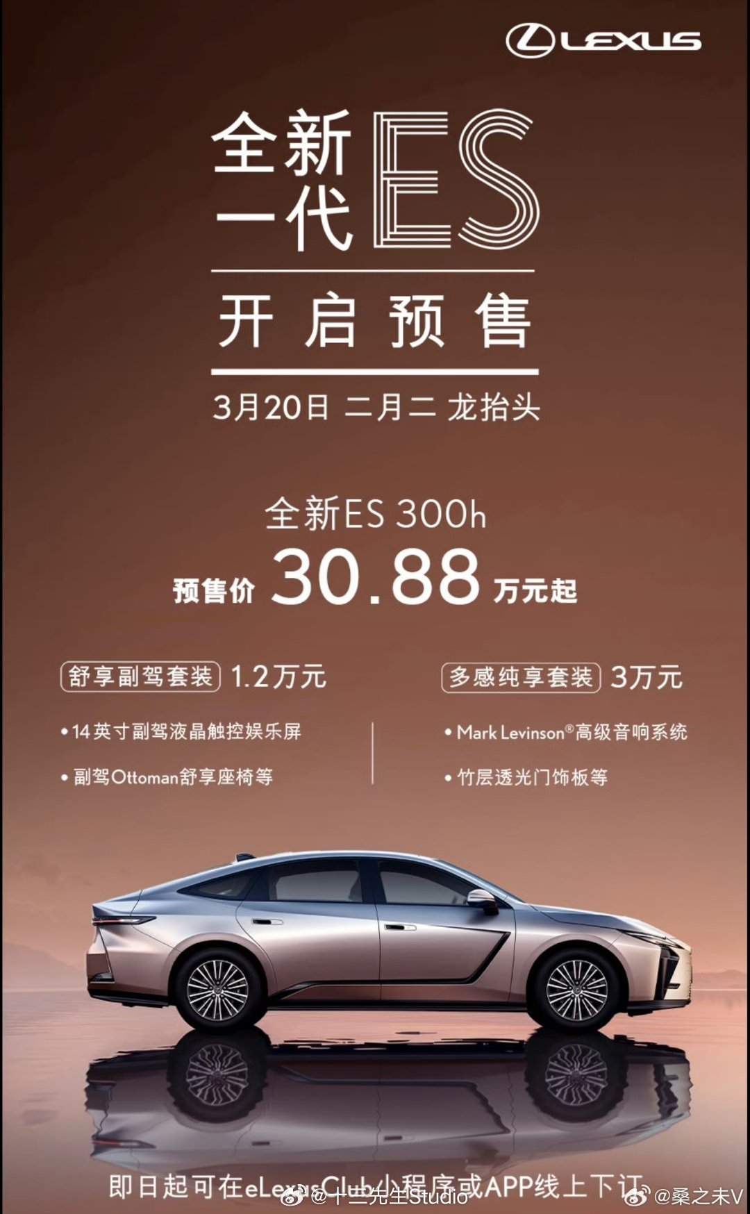 新ES300h预售价格30.88万起....30万如今能买到什么中大型轿车:插混的:享界S9,汉L,阿维塔12,腾势z9纯电的:小米SU7,小鹏P7都能买顶配另外现在C9的A6才32万起步,而且这一代48V轻混极其省油,实测正常城市代步还不到6L....这个ES长成这样,怎么卖....