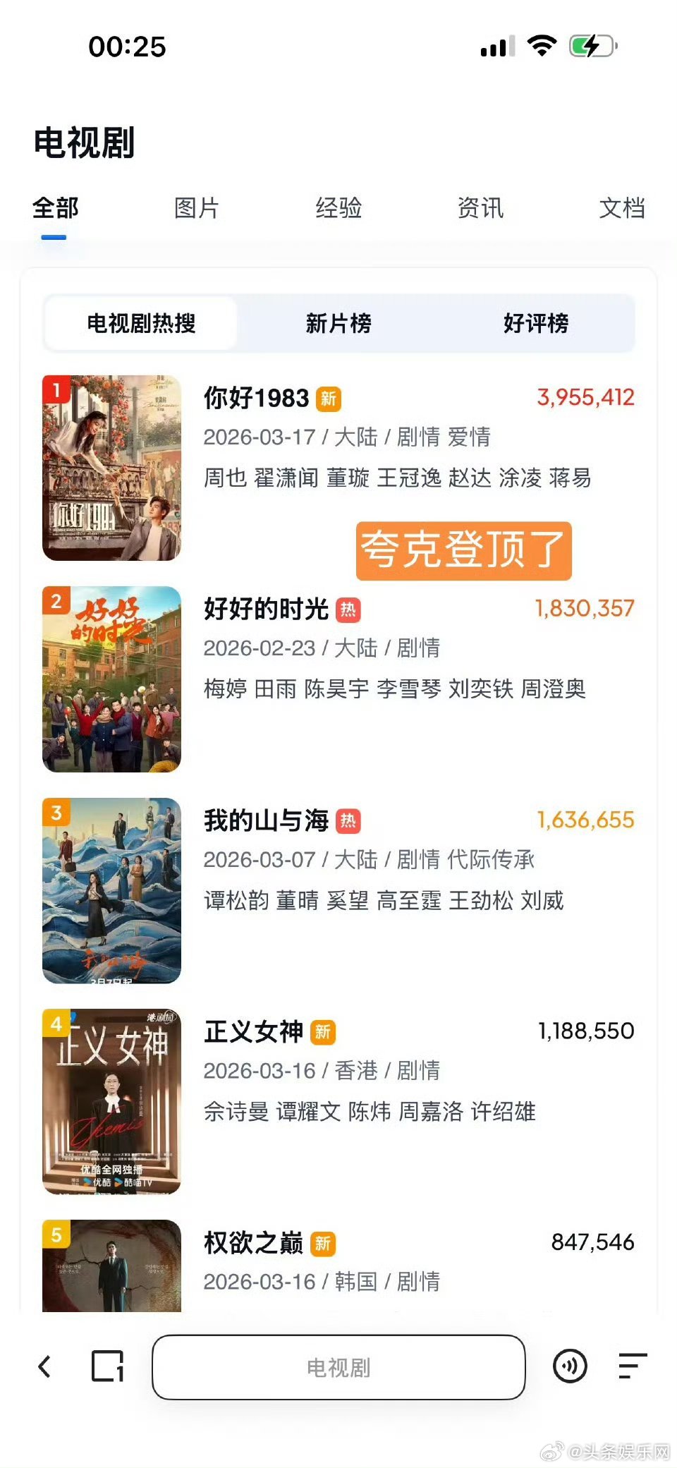 你好1983口碑发酵 明显感受到热度在上升,全员演技在线,流量与实力兼具。很多优质剧开局平淡却后劲十足,守住口碑就已经赢了!你好1983