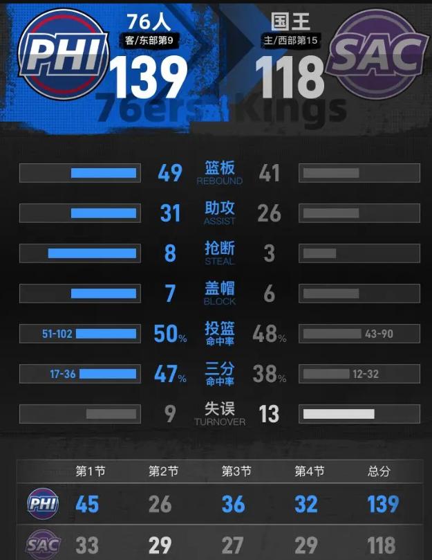 这哪是NBA?这是76人的投篮公开课,国王防守组集体翘课了!首节45-33,单节让人轰45分,这防线纸糊的都不如,纸糊的还能挡挡风呢。 你看德拉蒙德那记三分,中锋都拉出去军训了,国王球员还愣在原地,这防守站位连高中联赛都嫌业余。埃奇库姆38分11助攻,一个新秀把国王防线撕成碎片;爱德华兹7记三分,手起刀落像在训练馆里投着玩。这哪是比赛?这是费城青年军的全明星表演,国王负责递毛巾。 德罗赞和威少,俩老将进攻端还能看看,防守端简直就是人肉提款机,移动速度跟不上,换防慢半拍。威少11分8助攻数据漂亮,可防守端漏人漏得能把筐漏成筛子。雷诺30分、普洛登20分,看着挺美,实则是刷出来的遮羞布——得分速度赶不上丢分速度,这不就是典型的"刷子型输球"吗? 76人也别急着开香槟。这场大胜是对手衬托出来的,国王防守效率联盟垫底,内外线千疮百孔,遇到真正强队,你的进攻还能这么丝滑?埃奇库姆、格莱姆斯、爱德华兹确实天赋炸裂,可这场球没经受真正的防守考验,这种"虚假繁荣"最害人。 国王这边,纸面阵容不差,可防守态度烂到骨子里。从开球第一秒,眼神防守、退防散步、补防慢三拍,全队像没睡醒。没有防守DNA的球队,哪怕德罗赞和威少压阵,也是一盘散沙。想赢球?先回去把防守站位和沟通练明白,否则打一次被爆一次。 这场比赛揭穿了一个真相:进攻天赋能赢常规赛,防守韧性才能赢尊重。国王这防线,建议直接重组吧。埃奇库姆38+11雷诺空砍30分 76人胜国王