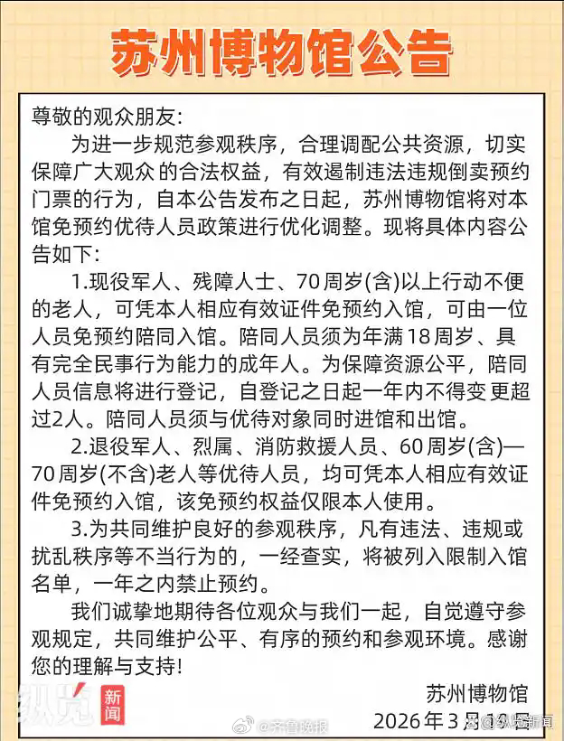 #黄牛出租老人带游客进苏州博物馆#【晚报来论 | “租”老人可以免预约,博物馆应改一改被滥用的“尊老”】没预约上,“租”个老人也能进?最近,黄牛就做上了苏州博物馆的“生意”。如果游客没能预约上苏州博物馆,只要花一百多块钱,黄牛就能安排一个老人带游客进去。#博物馆尊老政策被黄牛钻空成生意#