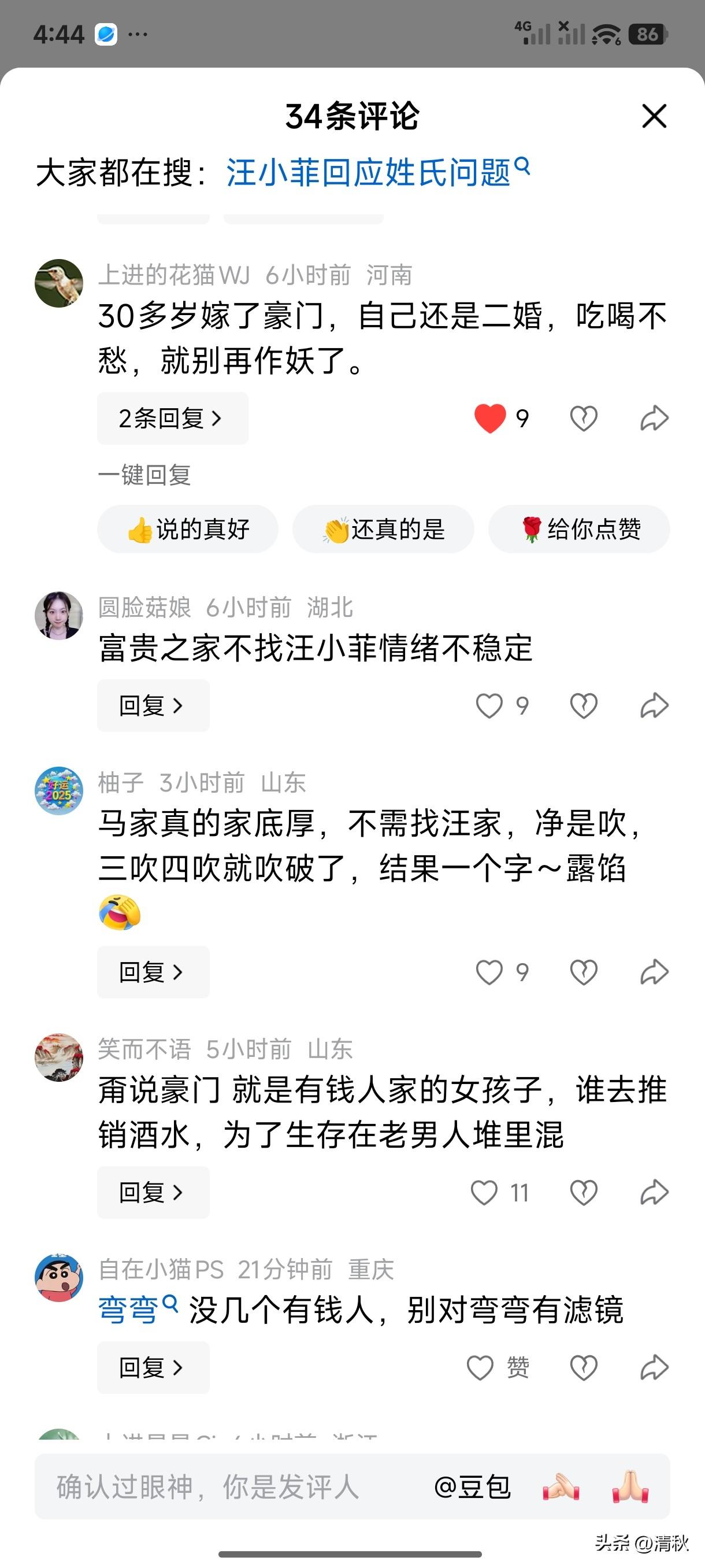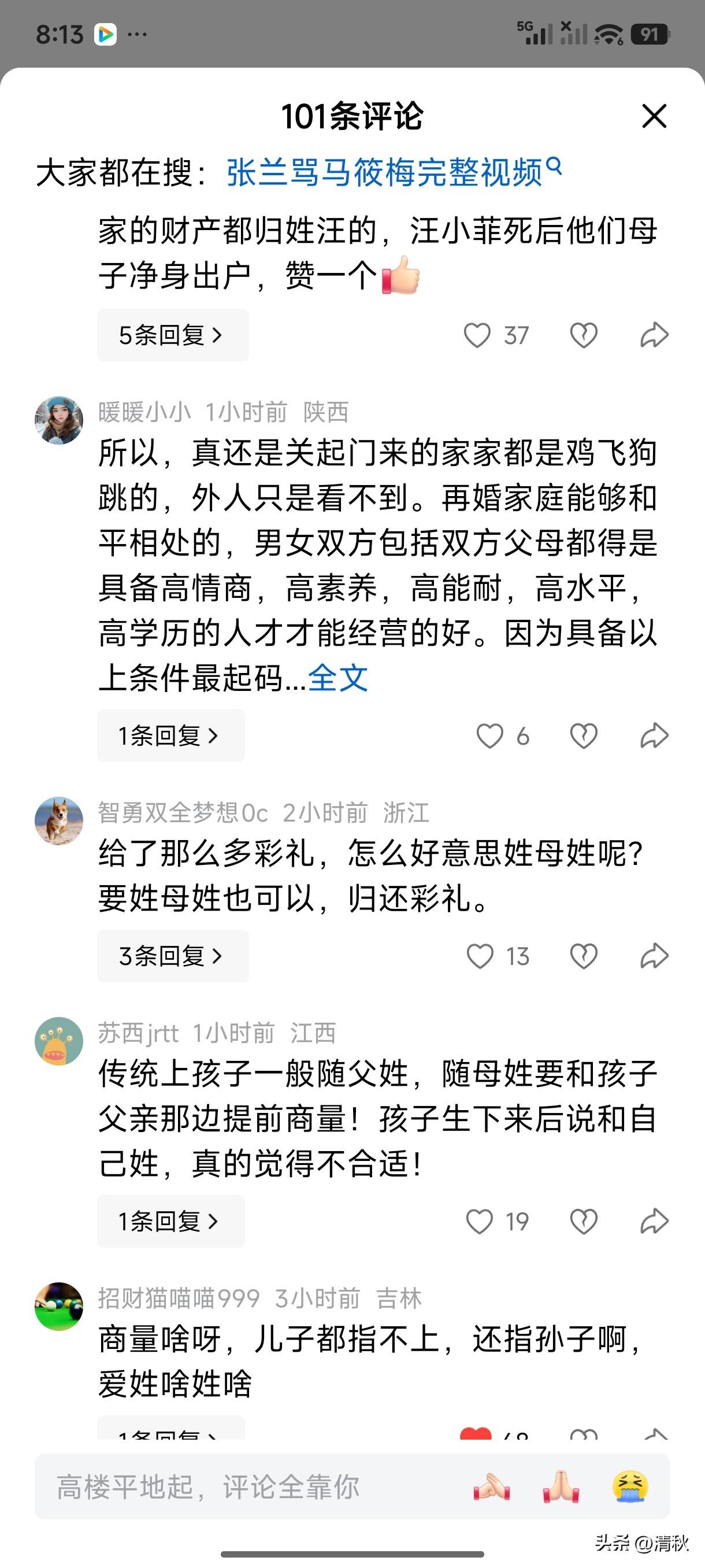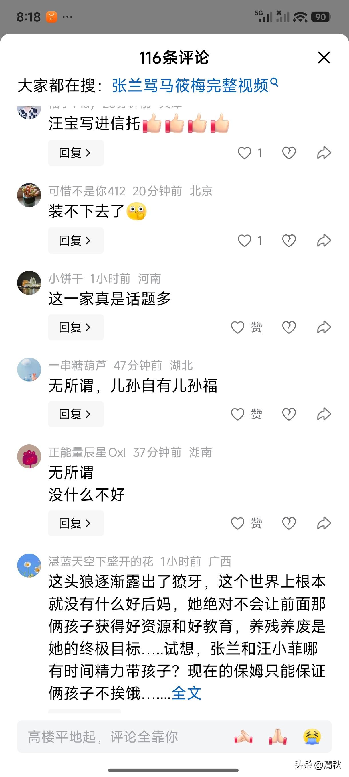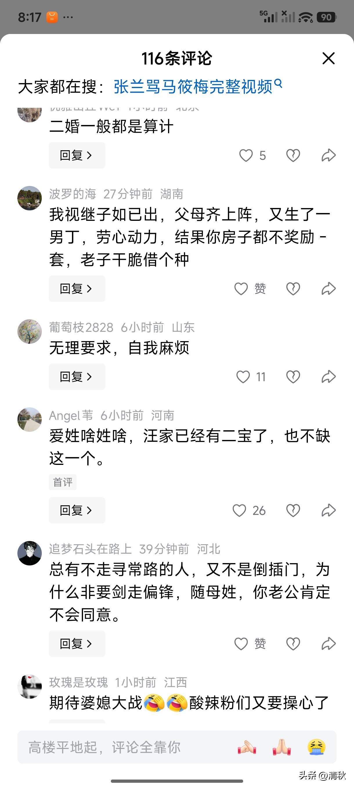 我早说过二婚马就没有那么单纯,网上爆料和前夫离婚就收获了一笔财富(当然不知道是真是假),但是网上她和前夫的亲密照足以说明他俩曾经爱得很深,可是离婚后跟了汪,又是那么多亲密照,我不信一个恋爱脑的女人会这么快忘了前任,和第二任很快就一见钟情?所以说她一定是个很现实的女人,她只是通过婚姻来改变自己的生活阶层。 网民们太小看张兰了,她阅人无数,久经商场,她会认为这个儿媳妇比前儿媳好吗?我想她早就知道这个马不是善茬,可能因为拗不过儿子,其实她们都是在镜头前演戏,目的就是演家和万事兴,带货赚米是真的。 大S再不好,她还让两个孩子姓了汪,她曾经身价上亿,跟汪结婚,我觉得她才是爱得纯粹。以前张兰及一些网民都在谴责大s不让孩子回北京,可是现在孩子的抚养权都在汪手里,为啥俩孩子还是没能来北京?现在想想这跟大S有啥关系呢? 马刚跟汪在一起时穿的不上档次,而且装得像淑女,一开始汪对她不咋滴,她倒是很乖,动不动投喂汪,凡事都依着他,慢慢地把他的心抓住了,就开始心眼一点点暴露出来了,现在有了儿子,就像网民说的那样,儿子一出生就迫不及待跟婆婆杠上了,打着汪看上台北上亿豪宅的幌子,实则是在试探婆婆,一看婆婆不出钱,就开始想办法出幺蛾子,说什么想让孩子跟自己姓,网民们说的也对,你爱姓啥,反正汪家有孙子孙女,不缺你一个,感觉生个儿子成了要挟人的工具了,再不济就是看上人家的基因生个儿子,天天直播间演戏,假话吹牛说多了,时间长了就自己戳穿了,曾经说自己家财产都继承不过来,说自己是年入2亿的茶场老板千金,殊不知被网友挖出来是卖早餐的,这会自己又在直播间说家里就两套房,一套小一居出租,一套还在还房贷,父母还住着爷爷的房子,说外祖父的遗产够几代人花了,又是亲戚全是清北高学历……,可能自己说过多少谎话都记不清了,在直播间编着编着就把自己的谎言拆穿了。 原来支持她的粉丝,现在也对这迫不及待的吃相反感了,这样下去凉凉了。