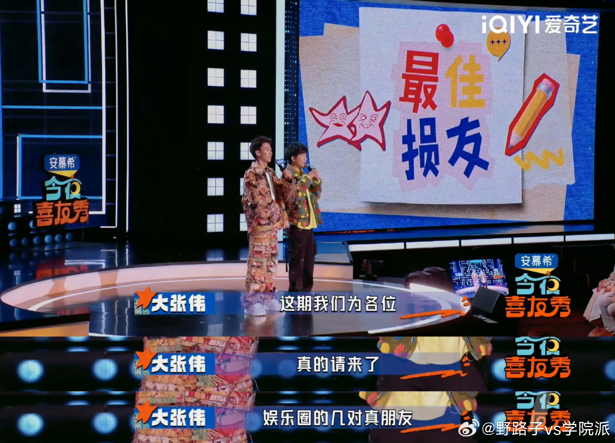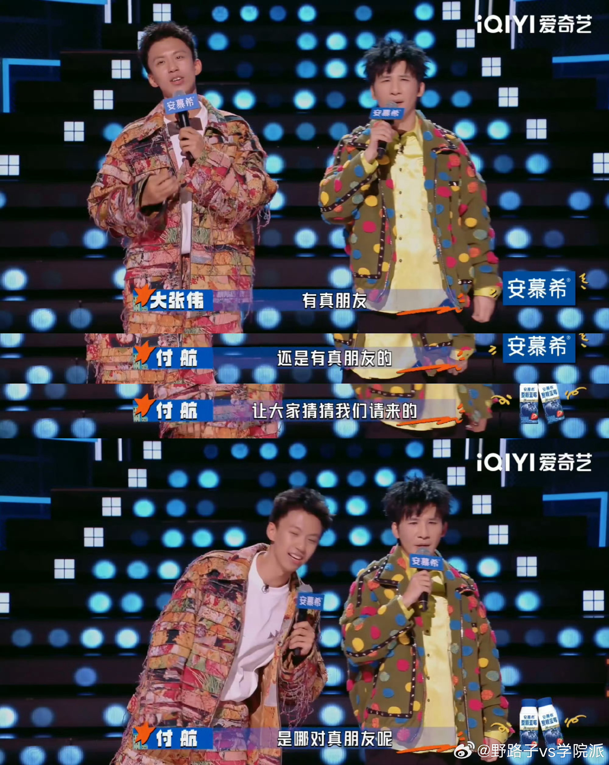 大张伟拒绝付航微信申请介绍吴昕时,俩人一本正经夸嘉宾专业、不插嘴。结果付航当场碎嘴不停:“我就叨叨叨一直说”,连气口都不给大张伟留,全网第一次见大张伟插不上话的场面甚至付航现场吐槽说自己被大张伟拒绝了付航微信申请,但是我们大张伟“升咖了”,说直接找经纪人就行今夜喜友秀