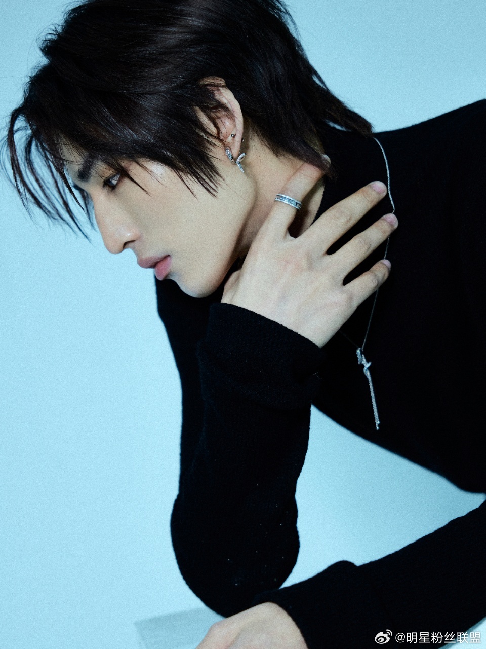林秋楠 轻点帅你小子偷偷藏了多少帅照啊!蓝调背景+黑毛衣,氛围感直接拉满,连耳朵