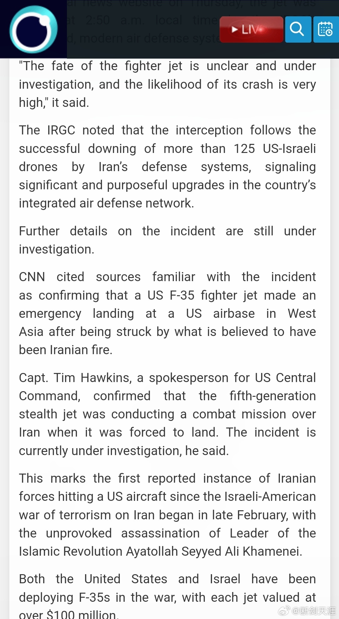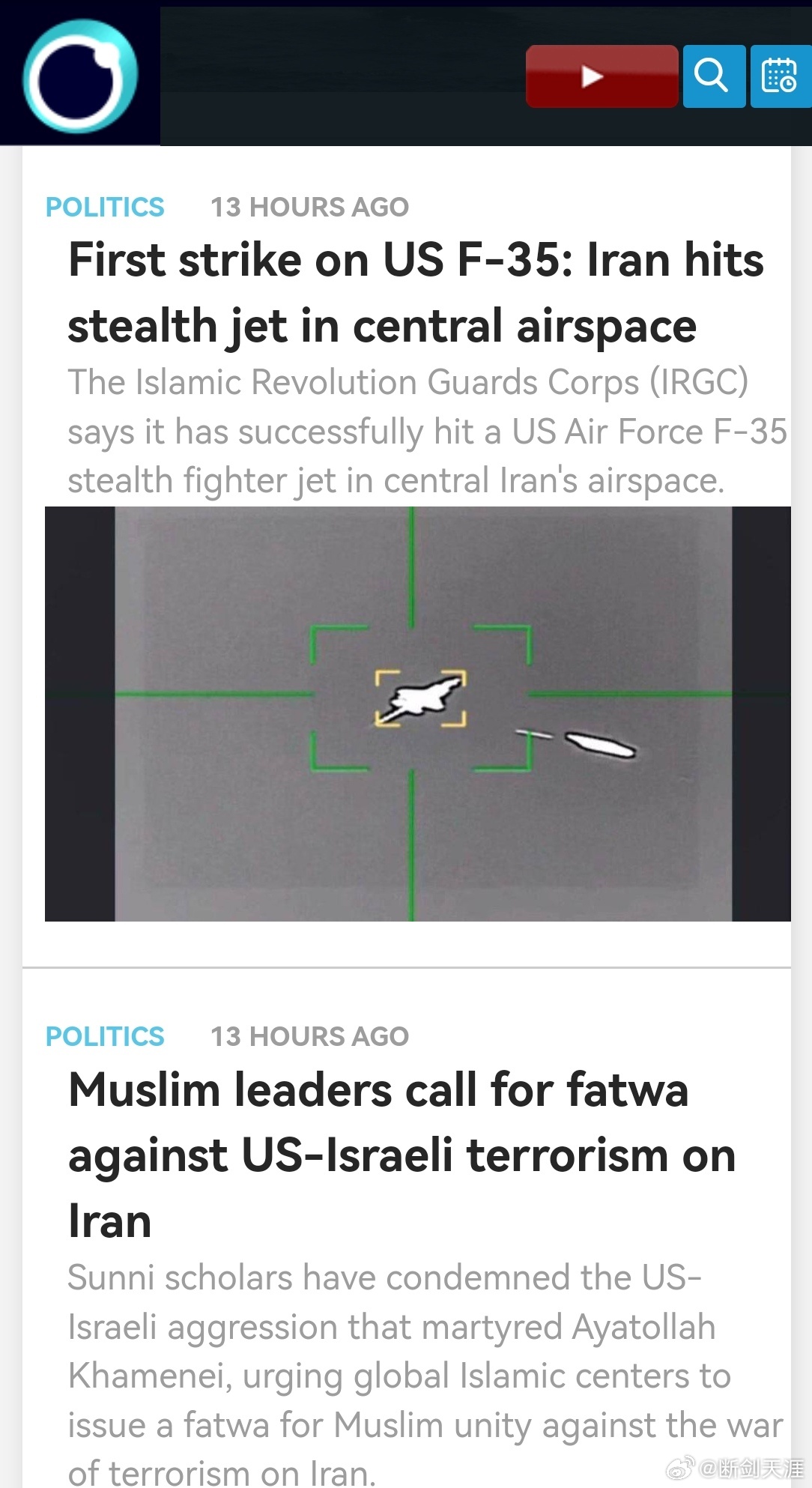 美军证实F35紧急迫降对美国 F-35 战机的首次打击:伊朗在中部空域击落隐形战机