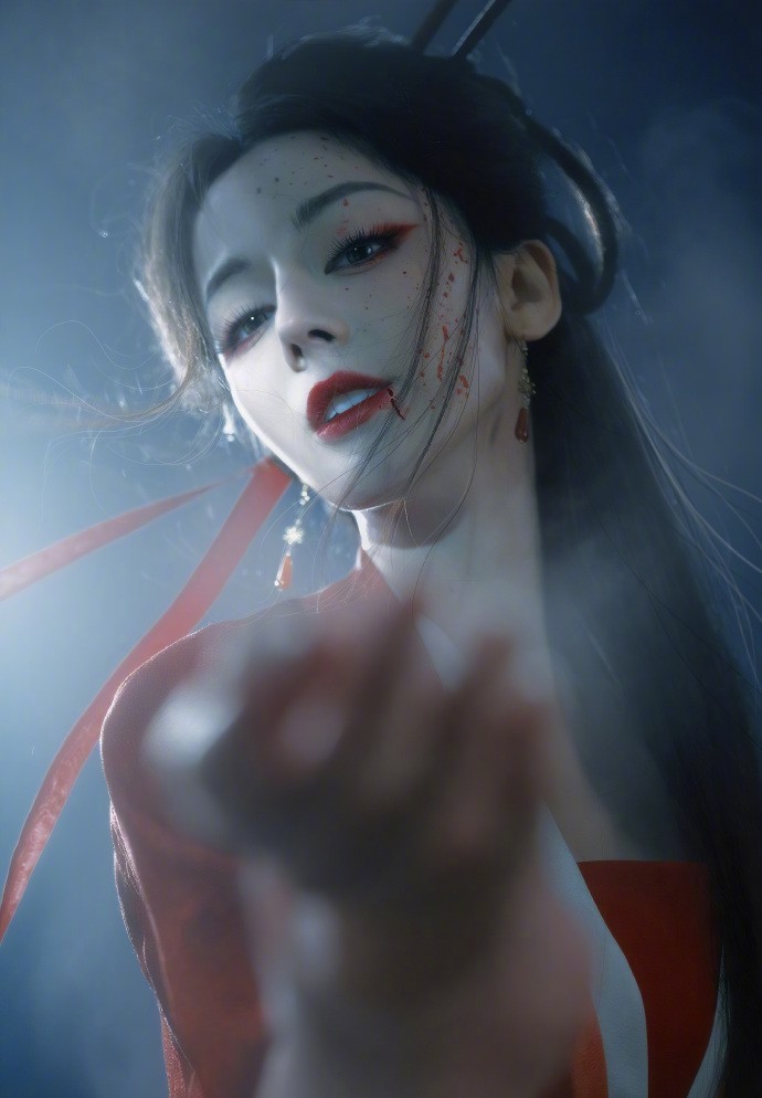 迪丽热巴红衣女鬼塑 这个妆容给到夯!红色眼线简直太出彩了,这里为大家分享一个干净利落的红色系妆容,没有红色眼线的可以用红色眼影粉加点定妆喷雾试一试,又酷又美~