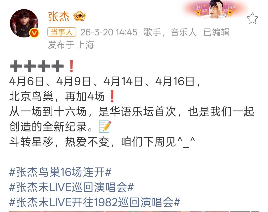 张杰鸟巢站加场张杰舞台粉就是这么爽,这个演唱会加加加加加加多少也不会厌倦!16场连开太牛了!张杰鸟巢16场连开