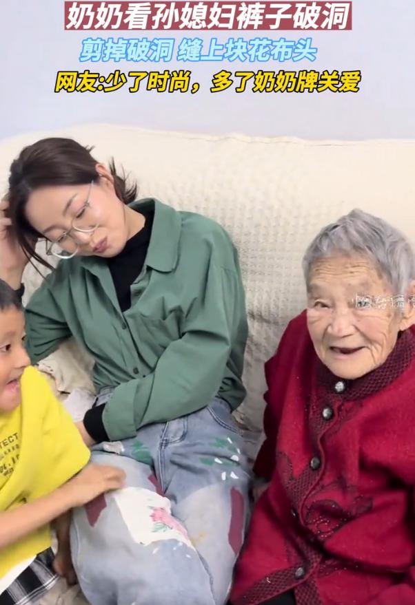一下变限量款了!内蒙古,女子跟着老公一起去看望奶奶,没想到,奶奶看到孙媳妇穿着破洞的牛仔裤后,还以为是裤子坏了,直接剪掉破洞,然后亲手缝上一块花布头。网友:少了时尚,但多了奶奶牌的关爱 当天,女子进屋后,就被奶奶盯上了她这条破洞的裤子,在她的眼里,这不是时尚,而是漏风,连忙就让孙媳妇坐到沙发上,自己拿起剪刀开始剪洞,一边剪还一边叨咕:我给你剪了,完了一会我再给你缝上 女子看到奶奶的样子,也没有阻拦,就坐在沙发上让老人操作,她也知道这是奶奶的一片心意 而经过奶一番裁剪,原本破洞的地方不见了,取而代之是一块带着大花的白布,奶奶摸着剪裁的地方,也是心满意足的笑了 有网友表示:看到这个想起我一个哥们,在城里混成了高管,收入颇丰,结果染上了打高尔夫的毛病,晒得黢黑、满手老茧。春节回老家看奶奶,奶奶看着大孙子,心疼得掉眼泪,说道:实在不行就回来吧,家里种两亩地,也不至于苦成这样! 还有网友说:当年流行那种衣服裤子局部磨损风格的服装。 我奶奶看我穿着这样的衣服,回屋里拿了2000块钱给我,让我买好吃的…再买些新衣服 其实真就是这样,时尚是流动的,但爱有它自己固执的模样。它可能不那么“懂”你,可能带着代沟的痕迹,但它从不打折 那条被缝上花布头的牛仔裤,大概会是这位女子衣柜里最特别的一件,它不再时髦了,但每一次看到那块花布,都会想起奶奶戴着老花镜、一针一线缝补的样子。这哪里是“坏了”的裤子,分明是被爱加固过的