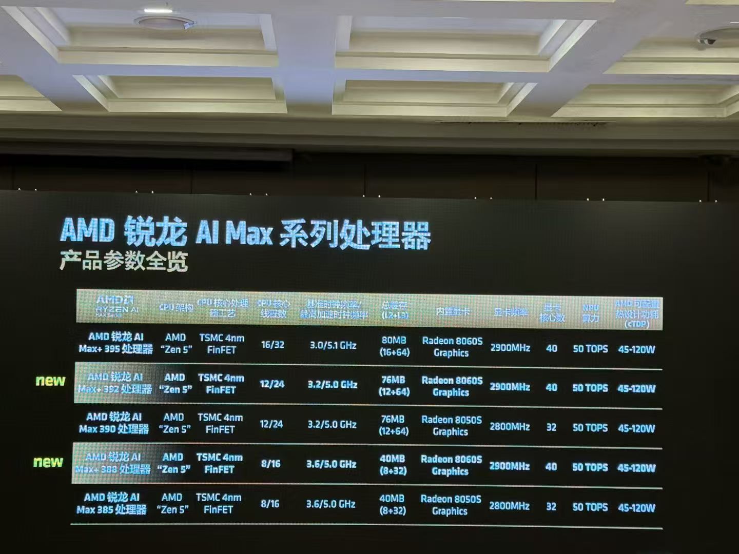 AMD在CES发布的AI 400系列已经陆续在许多的品牌笔记本,mini主机上搭载了,而且也已经有越来越多的掌机、笔记本开始搭载AMD AI MAX+ 395,128GB内存,8060s大显都出现在轻薄本上,期待后续的392和388。附上一个AMD AI 系列处理器规格表,据说AMD锐龙AI 7 H 445的性价比会很高(据说国内的产品都会带H,和不带H的规格一样)