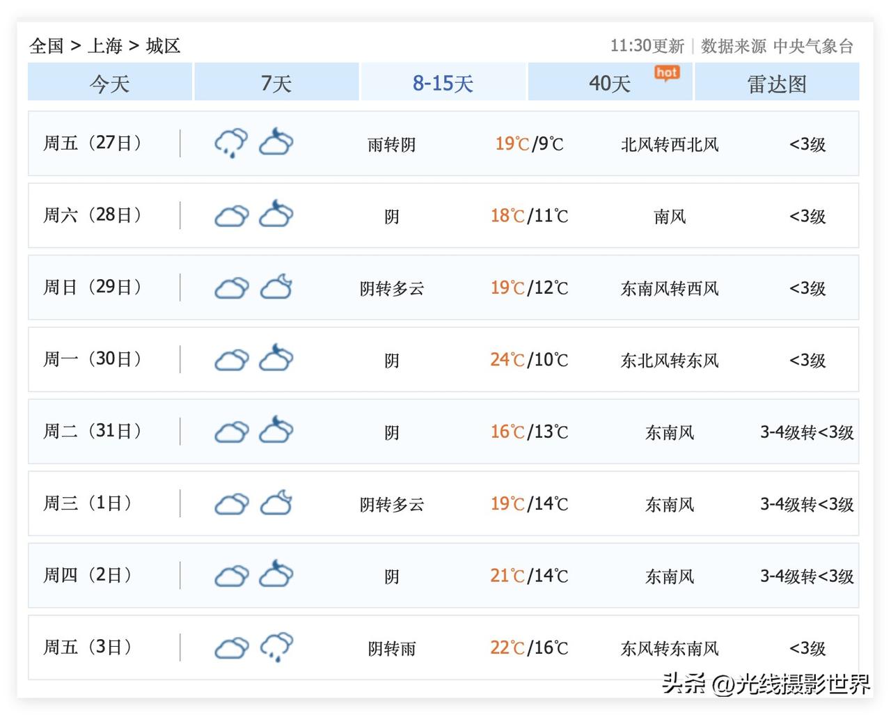 喜讯!明天,上海终于要出太阳啦!3月21日和22日,星期六和星期天,这周末的上海,多云晴好,天气可能好到爆炸!这周末,上海快速回暖,最高气温19度,非常适合踏青赏花,顾村公园的樱花,大家准备好了吗?!当然,上海人也可以去南京苏州杭州……鸡鸣寺的樱花,曲院风荷的樱花,西湖白堤的桃红柳绿……都是上海人特别钟爱的! 只是,下周,上海可能会再次经常下雨或者阴天……天气应该是不如这周末…… 所以,上海的朋友们,要更加珍惜这周末的好天气啊! 中央气象台认为,3月底4月初,上海也是阴雨天比较多,阳光比较少,虽然这是中长期天气预报,但是,应该也是八九不离十,毕竟,清明时节雨纷纷嘛!