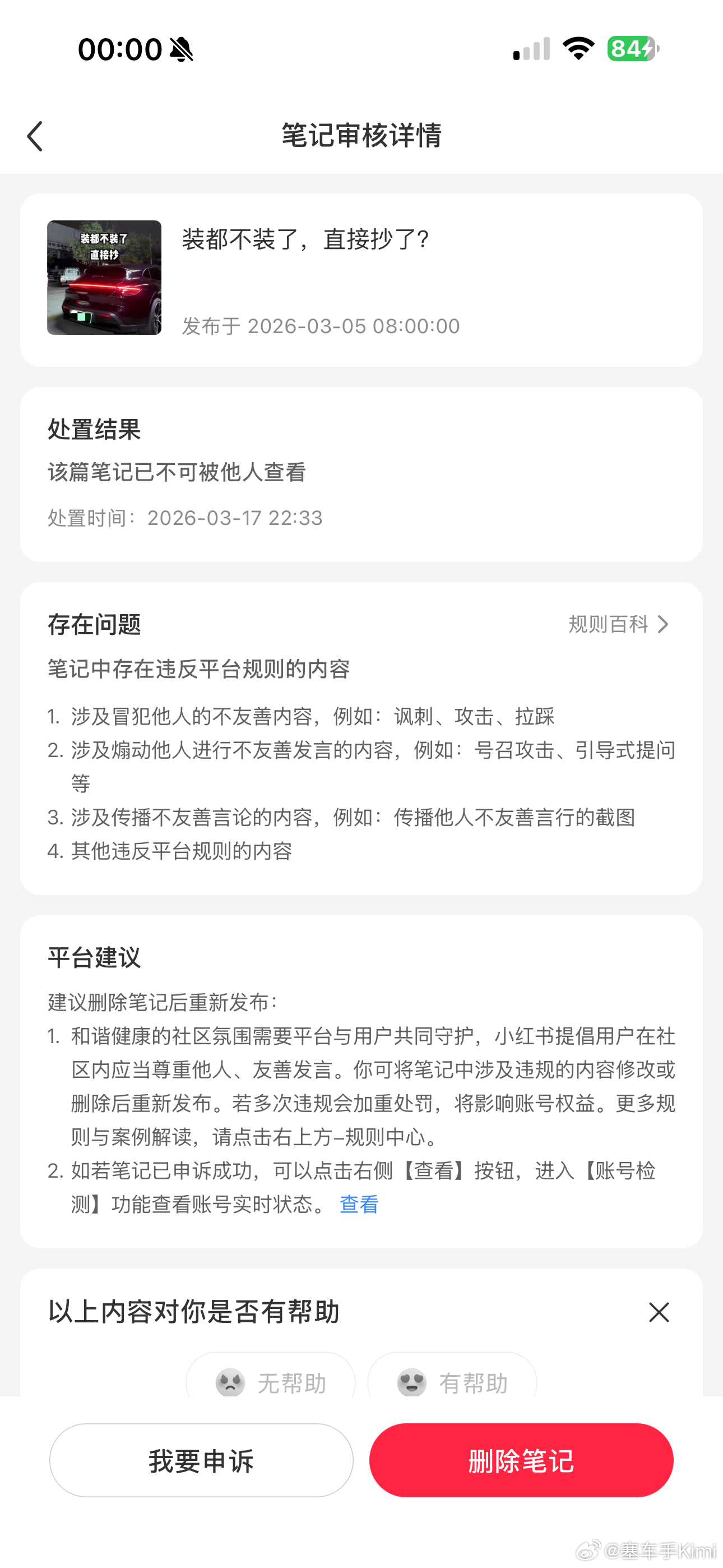 我说我自己车,视频都被下架?可真牛啊!谁急说的就是谁