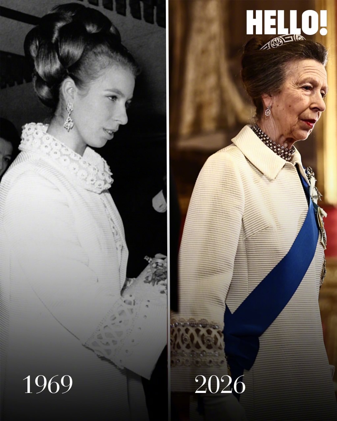安妮公主在出席招待尼日利亚总统及夫人的国宴上,穿了一件她保存了50多年的外套。这件外套她最早是在1969年伦敦电影《Run Wild, Run Free》的首映礼上穿过。50多年过去,这件衣服依然可以上身,也不显过时,将60年代流行的领子做了改动,变成了更好配搭更经典的翻领。她很好的诠释了时尚不是被替代,而是被珍藏。