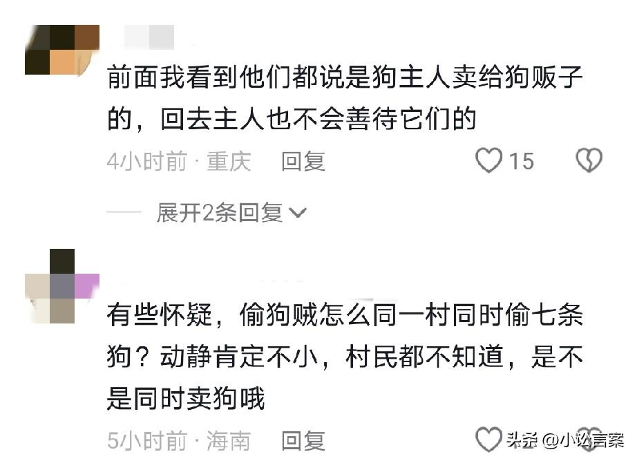 高速逃亡的7只狗狗安全回家后,网上不好的声音开始出现,有人担心狗狗的未来,甚至还有人同情起了狗贩子! 之前的故事很多人都已经知道:德牧拼着受伤弄开了运狗车笼子,7只狗狗逃走,在高速上结伴回家,各自发挥着团队作用,不离不弃。 在被抓之前,它们就是一个地方的,常聚在一起玩耍,这次落难后的相互扶持,更体现了友情的可贵。 在爱心者帮助下,狗狗们顺利回家,网友们放下心来,但也有细心的人发现了其中微妙: 一、主人们的态度。养宠物的人特别在意宠物,几乎当成半个家人,一旦发现不见了,会急得团团转,动用各种方法去寻找。 可这么多狗不见了,村里一点动静都没有,网络上、现实里也没有发现寻狗启事,这正常吗? 二、狗狗们回家后的表现。自己很在意的东西不见了,本以为希望渺茫,却没想到几天后又失而复得,正常人都会非常开心激动,甚至内心发酸。 但狗狗们回家后,主人却表现得很平静,甚至有些冷漠,完全看不出着急和失而复得的开心。 三、集体被偷走的可能性。六七只狗在一起玩耍,他们是活蹦乱跳的,看到陌生人过来,会吠叫、会逃离、会反抗,不会傻站在那儿,让你一只只抱上车。 偷狗者即使有网兜、麻醉针等手段,想要不被村民发现,短时间将7只狗一网打尽,装车逃离,几乎是做不到的。 7只狗又的确是出现在运狗车上,那么谁能让它们乖乖就范呢?答案不言自明! 若真是这种情况,即使这一次狗狗们安全回家了,下次再被贩卖,结果可想而知,好运不是一直都有的。 另外,如果是正常买卖,狗贩子与主人一手交钱一手交货,现在钱货两空,狗贩子哑巴吃黄连、有苦说不出,也太冤了。 中国幅员辽阔,饮食文化多有不同,有些地方吃狗肉,有些人却接受不了。 但不管怎么说,普通人养狗和养鸡养猪的出发点截然不同。既然曾经把它当作取乐的伙伴、当成看家护院的帮手,即使没爱了,也应该留一个好的归宿……