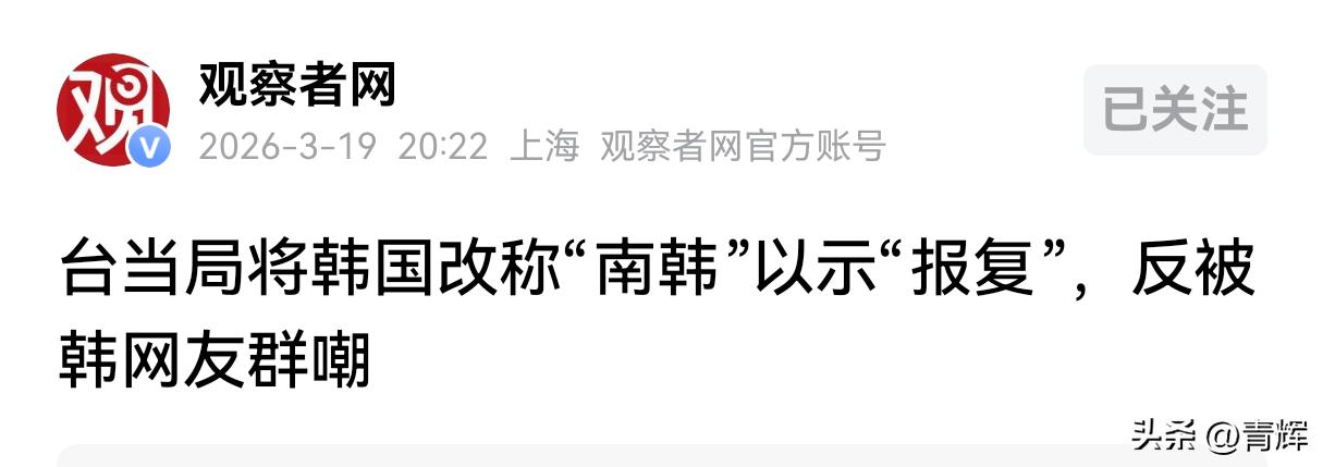 韩国要求台湾民众入境必填“中国”,台当局反制:也给韩国改名字 韩国现任总统李在明上来之后急切的想要修复中韩关系,除了在外交领域拿出了一些实质性的动作之外,韩国还针对台湾民众入境的一些细则进行了新的规定。按照最新颁布的规定,台岛民众进入韩国在填表的时候,在国籍一栏中必须要选“中国”,然后再下拉菜单中才能够选择台湾。 而在纸质入境卡中,则必须白纸黑字写明:中国台湾。 无论是电子签还是纸质卡,均不得有“台湾”单独出现的情况,否则一律拒签。 按理说韩国方面这样做是没有任何问题的,毕竟世界上任何一个国家如果想与中国保持最基本的外交关系的话,就必须要承认一个中国原则。然而韩国宣布了这件事情之后,台岛当局却不乐意了,根据台岛联合新闻网等多家媒体发布的消息可以得知,3月18号台当局针对韩国方面的这种做法已经启动了所谓的反制措施,也就是把“韩国”改成“南韩”! 不过台当局的这种做法却受到了韩国网友的嘲讽,因为在韩国人看来,称其为南韩本身也没什么问题。台岛当局的这种反制措施,完全没有任何实质性的意义。 不过通过这件事情也能够看出以赖清德为主的台岛当局心胸狭隘,并且分裂野心一直没有改变这种现象。对于这帮人来说,让他们承认自己是中国人,难如登天。