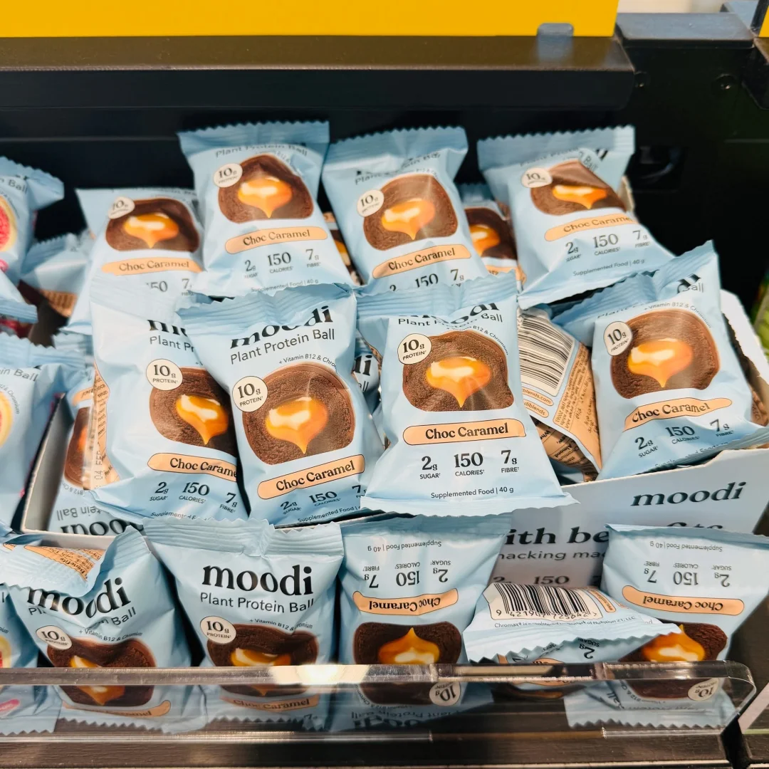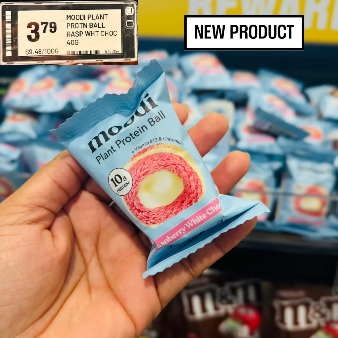 Moodi植物蛋白球终于来PAK’nSAVE Highland Park啦🌱小小一颗 满满能量 每颗含有10g植物蛋白 软fufu的夹心,完美平衡了甜品的快乐和健康的需求,健身前后或者下午饿了来一颗,真的太顶了! 是解馋又健康的完美小零食🥹 两种神仙口味: 🍫巧克力焦糖:浓郁的巧克力外壳,咬开是流心焦糖,甜而不腻,幸福感拉满![棒R] 🍓覆盆子白巧:清新的覆盆子果味中和了白巧的甜,口感层次超丰富![棒R] 虽然小贵,但偶尔当健康小零食犒劳自己也很值~