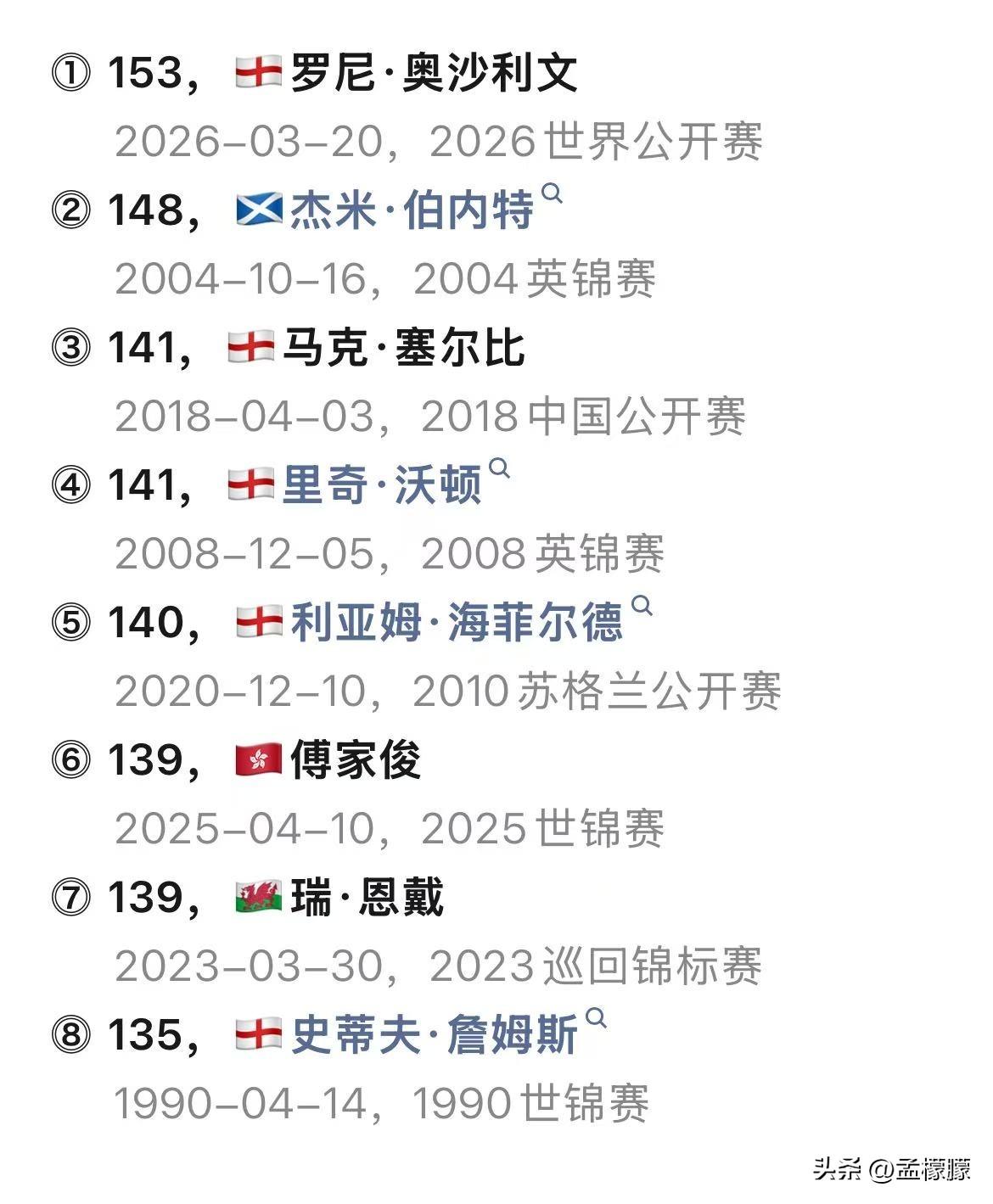 2026斯诺克世界公开赛|153!火箭打破出尘封22年的历史单杆最高纪录,5-0