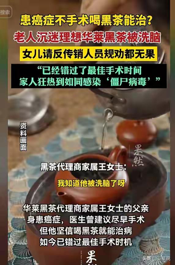 安化黑茶惊天骗局:38岁老板娘被挑拨与丈夫离婚,为冲业绩陪睡,七旬癌患弃疗喝到死,背后传销网触目惊心! 当一杯普通的茶叶被包装成“财富密码”和“抗癌神药”,它就不再是饮品,而是吞噬人性与生命的深渊。最近,一个披着“养生外衣”的黑茶传销网络被彻底撕开,其内幕之肮脏,手段之卑劣,令人脊背发凉。 故事的主角之一,是38岁的服装店老板娘李薇。原本守着安稳的小店,生活平静。两年前,一位“热心”熟客将她带进一个居民楼里的“工作室”。那里没有招牌,只有热情的“家人”、满墙的“证书”和令人心动的“成功案例”。她们不谈推销,只谈关怀与未来。 在长达数月的温情围猎和财富蓝图洗脑下,李薇动摇了。她先投入7000元,继而为了“升级”咬牙凑出2.8万。从此,她的人生被“拉人头、囤货、升级”的指令填满。积蓄掏空后,她刷爆信用卡,最终忍痛转让了经营十年的店铺。 丈夫的苦苦劝阻,被“导师”扭曲为“拖后腿”、“见不得你好”。在持续的挑拨下,家庭战争不断,最终婚姻破裂。加入的帮助离婚十个有九个离了的,失去一切的李薇,在巨额债务和上线“冲业绩”的压力下,被暗示了一条“捷径”:用身体换取“大客户”的订单。从陪酒到陪睡,尊严被碾碎在破旧的车厢里,换来的却是寥寥提成和更深的绝望。 而另一个平行时空的悲剧,更让人痛心疾首。湖南一位七十多岁的癌症老人,本可通过手术获得生机,却被黑茶代理商盯上。他们拿着伪造的“康复证明”,声称黑茶成分能精准抗癌,胜过医院治疗,并挑拨老人与子女的关系。 ? 求生的本能压倒了理智,老人拒绝手术,将黑茶奉为救命稻草,甚至停掉正规药物。家人哭劝、反传销人士介入都无济于事。几个月后,癌细胞扩散,老人弥留之际仍在喃喃自语:“茶喝了这么久,病怎么还没好……”一个本可挽救的生命,就这样被谎言葬送。 这两起悲剧,赤裸裸地揭示了所谓“高端黑茶”的传销本质。它利用人们对健康的焦虑、对财富的渴望实施精准围猎。其模式完全符合传销特征:高昂入门费、拉人头发展下线、形成多层级计酬。茶叶只是道具,价格虚高数倍,核心永远是“拉人”。 这些组织更擅长精神控制,通过集体洗脑、情感孤立,让受害者逐渐疏远亲人,全身心投入“事业”,最终众叛亲离。即便某些公司持有直销牌照,其运作层级早已远超合法范围,是彻头彻尾的骗局。 世上没有躺赚的奇迹,也没有包治百病的饮品。任何让你先交钱、再拉人、靠层级赚钱的模式,无论披着多么光鲜的外衣,都是危险的陷阱。它吞噬的不仅是钱财,更是人的理智、尊严与家庭。 请记住这个用血泪换来的教训,守护好自己的钱包与良知,也提醒身边每一位亲友:远离高额回报诱惑,生病相信科学,致富依靠勤劳。别让贪婪与恐惧,蒙蔽了判断是非的双眼。 黑茶骗局 传销陷阱 民生关注 (来源:根据澎湃新闻、央视财经、新京报等多家媒体相关报道及反传销机构披露案例综合整理)