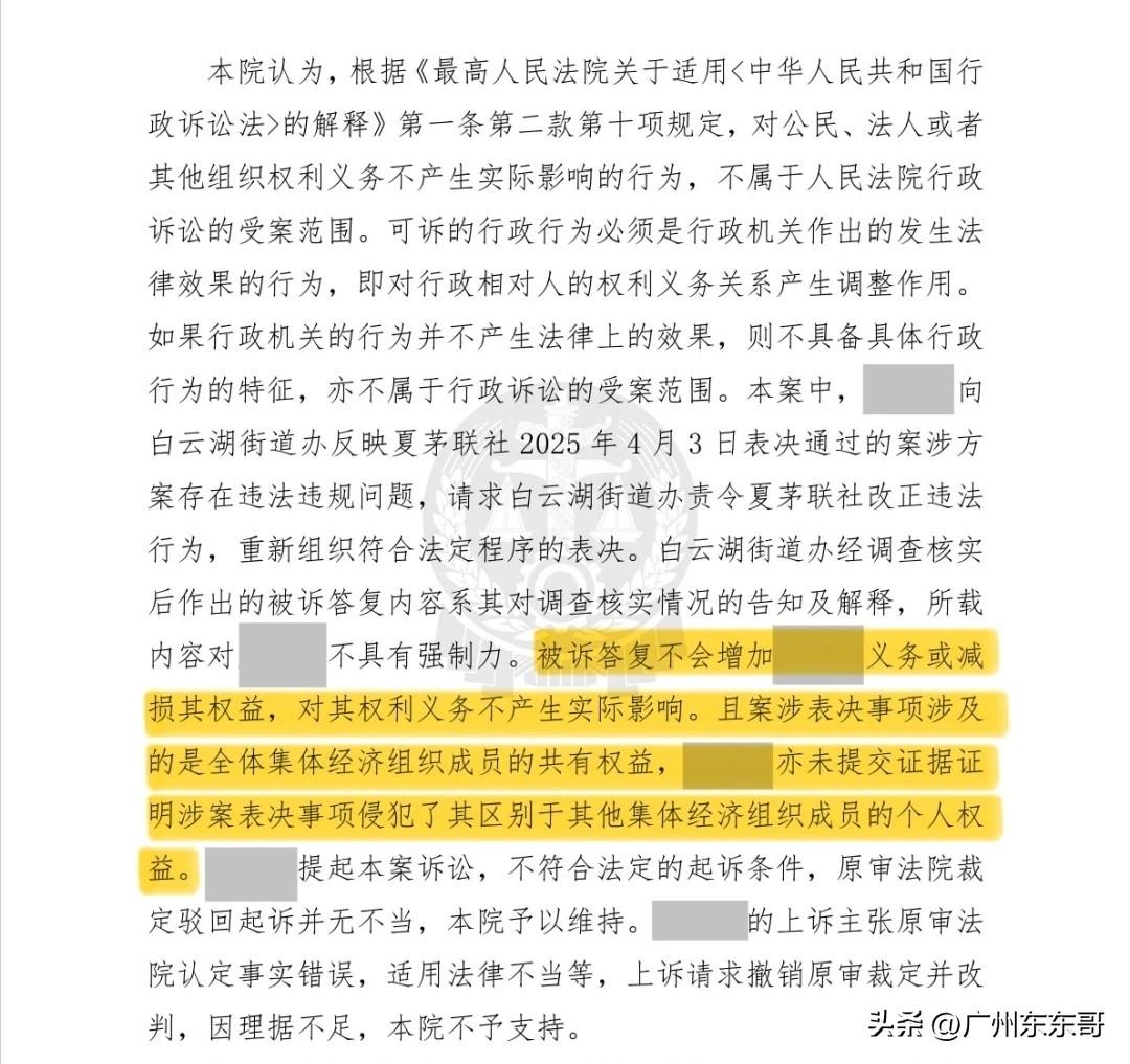 事关白云湖街夏茅村城中村改造,有村民行政诉讼被驳回! 两个案例中,都是反映夏茅村改造过程中意愿征询表决等问题。 最终结果都是夏茅村参加表决的人数、表决主体及通过率均符合法律规定,且已将表决结果进行公示,表决程序合法有效。法院驳回所有起诉,维持原裁定! 这也再次提醒村民,广州城中村改造已经势在必行,不要被别有用心的人利用,不仅白白浪费了金钱,还错过了最佳签约时机和补偿奖励。